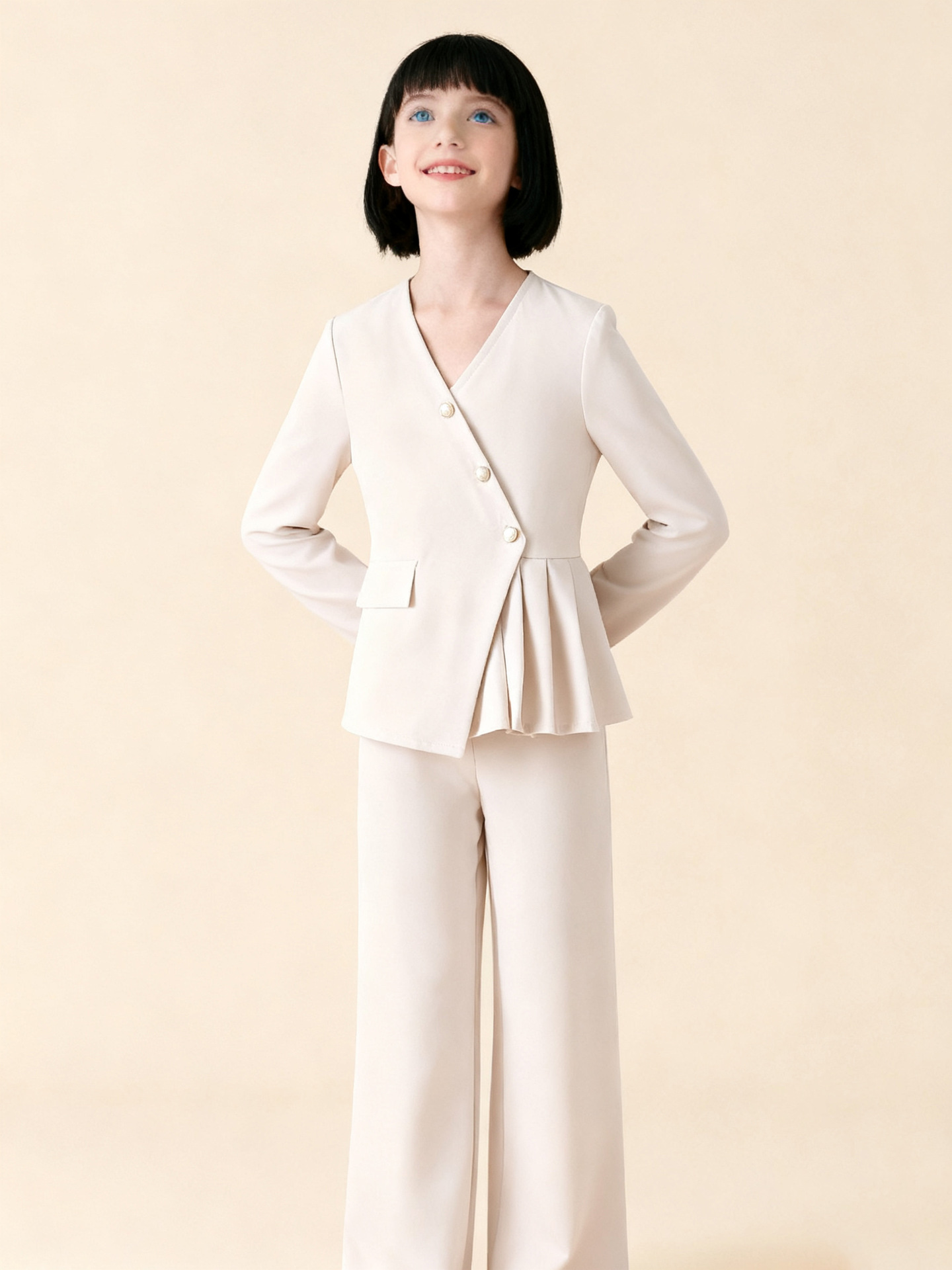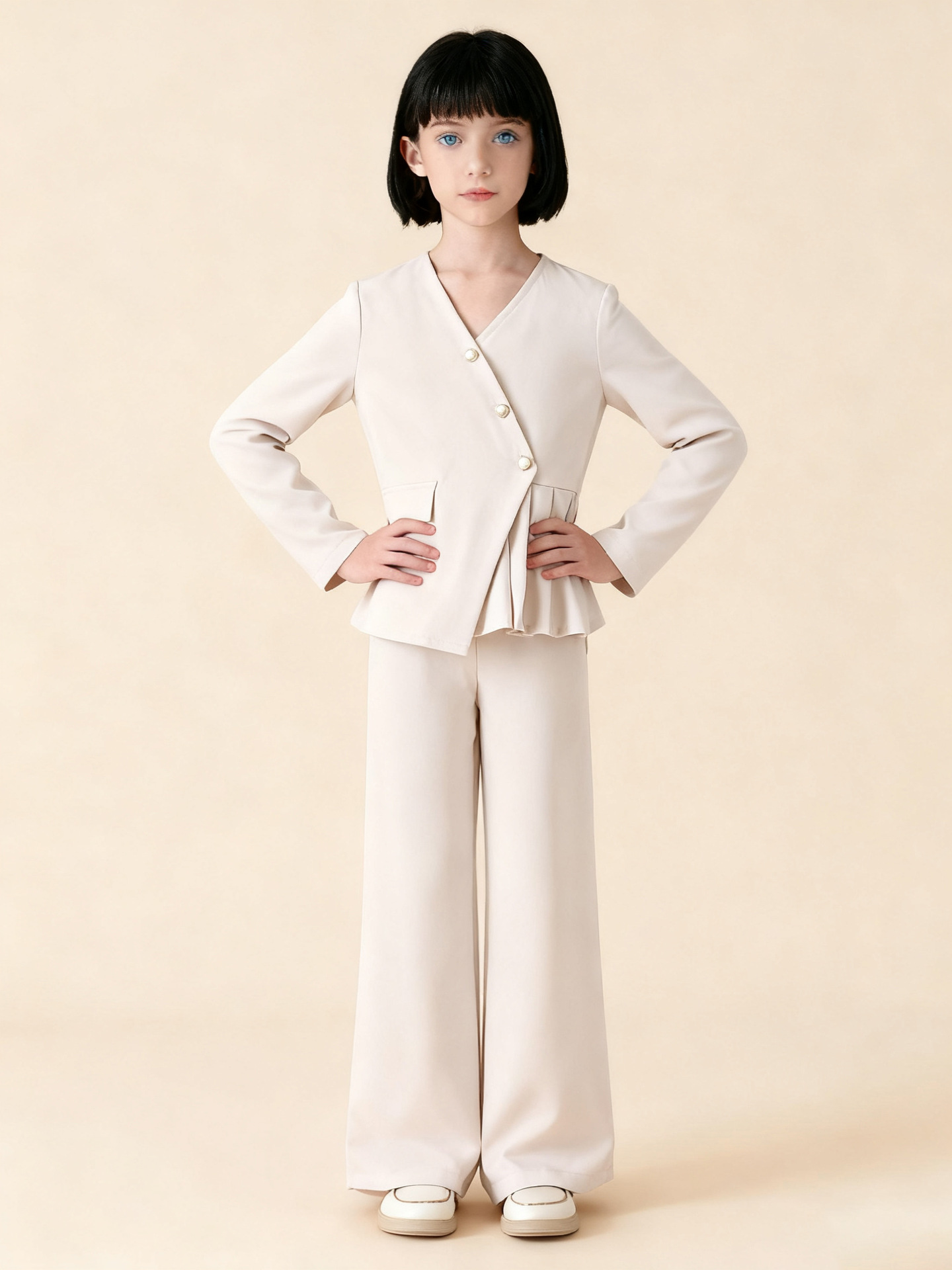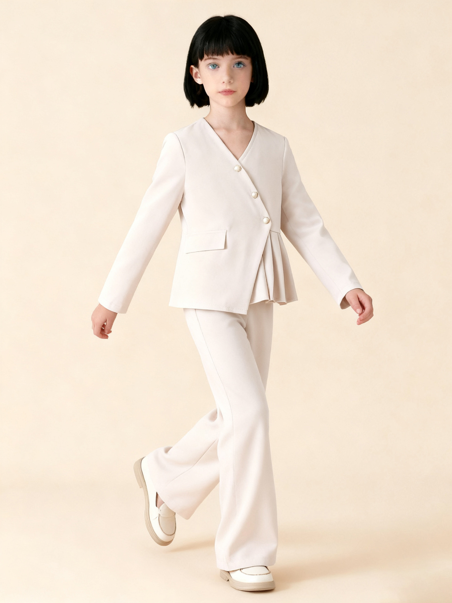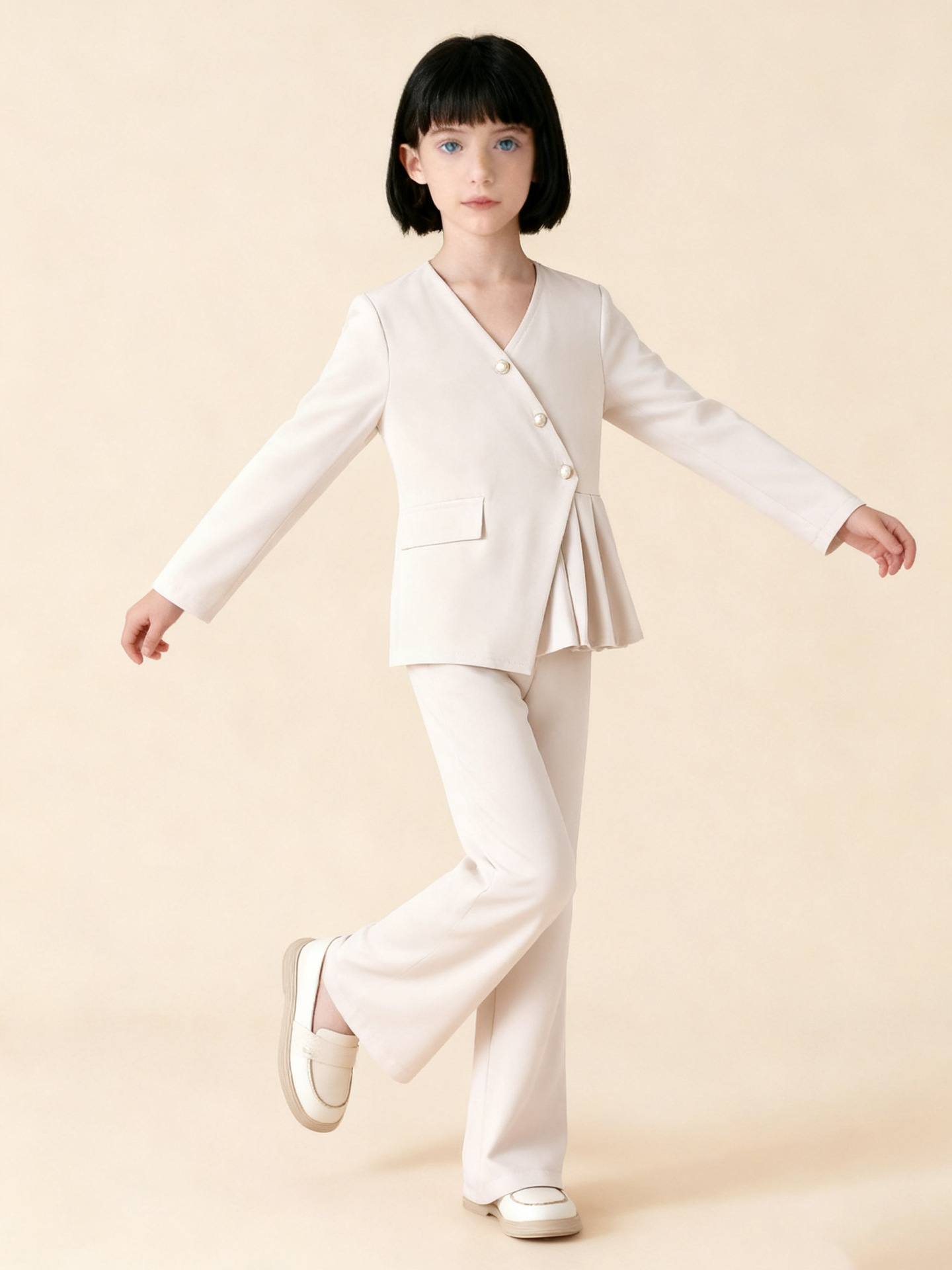 女童白色西装套装裙春秋新款儿童时尚洋气西服外套阔腿裤两件套