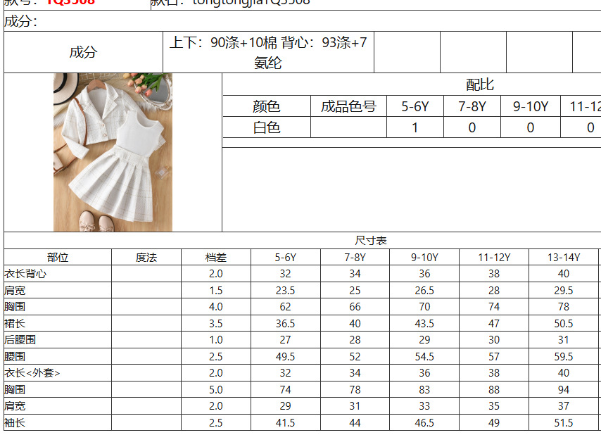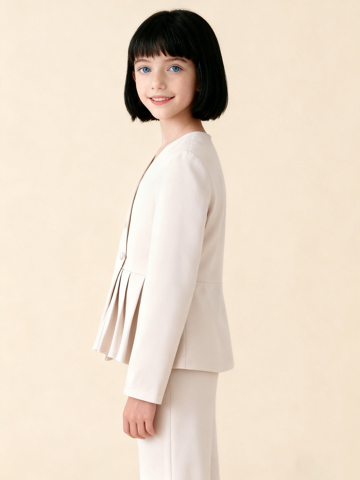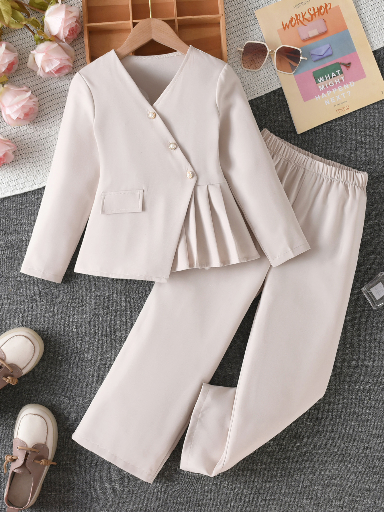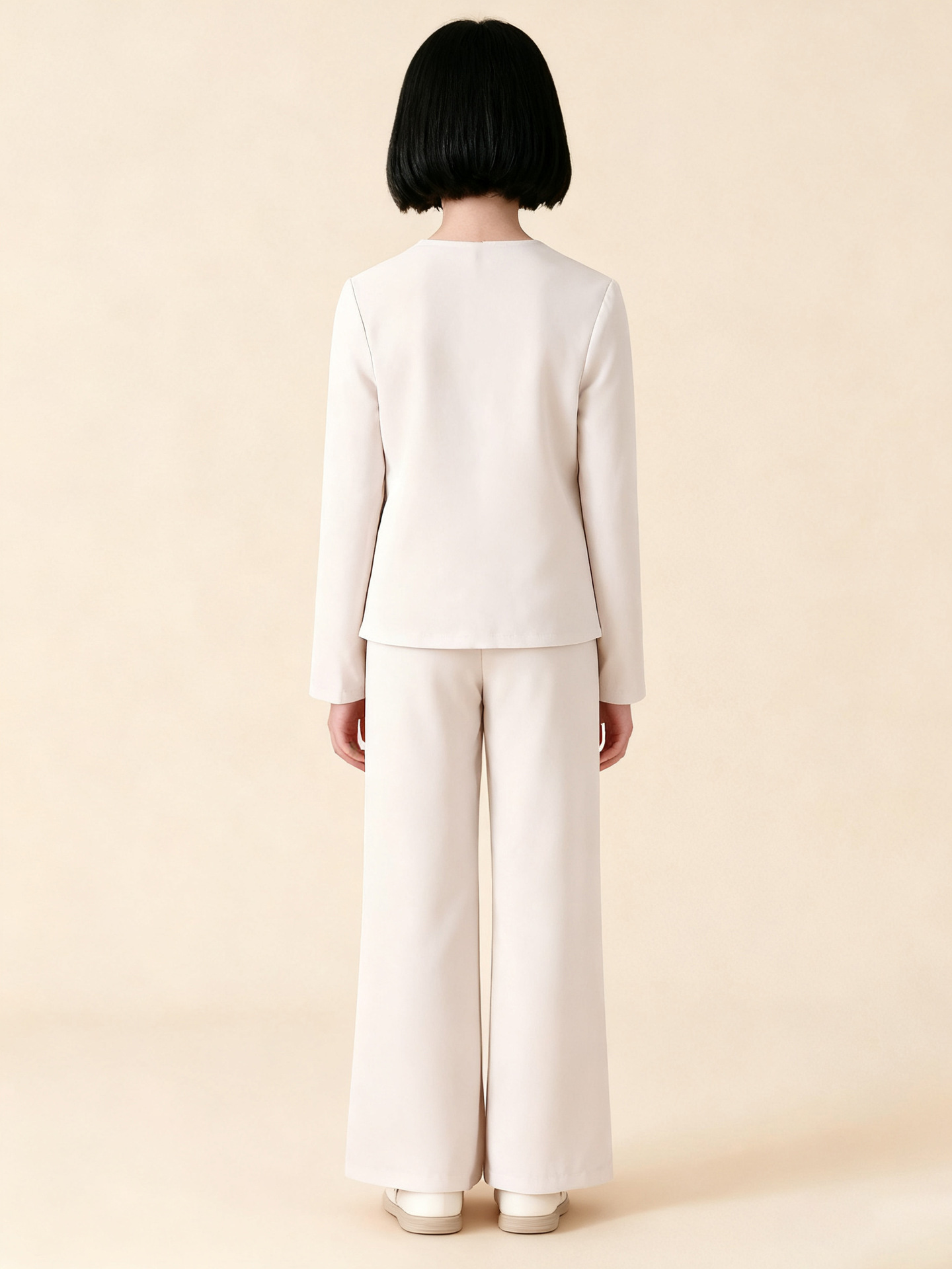 女童白色西装套装裙春秋新款儿童时尚洋气西服外套阔腿裤两件套