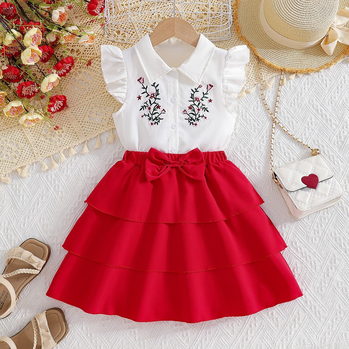 女の子スーツ夏 2025 新しいファッショナブルな子供の夏服小さな女の子半袖ケーキスカート 2 点セット