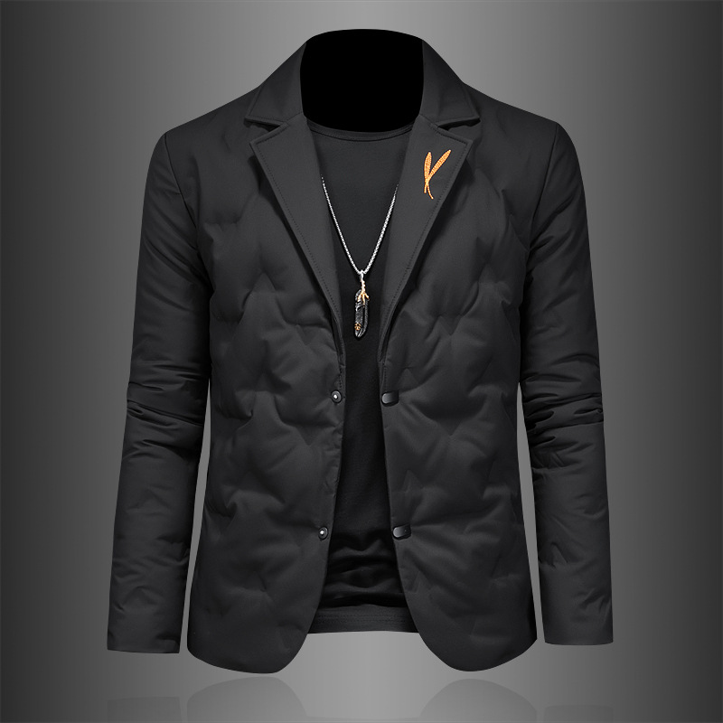 ヨーロッパ駅男性ダウンジャケット刺繍2023冬の新型ショート保温コートスーツ襟ビジネスレジャーブーム