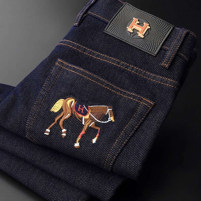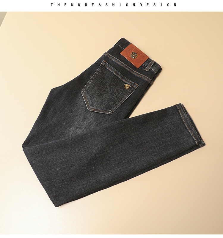 2025秋冬男士高品质水洗牛仔裤 欧洲站大牌刺绣 小直筒弹力长裤潮