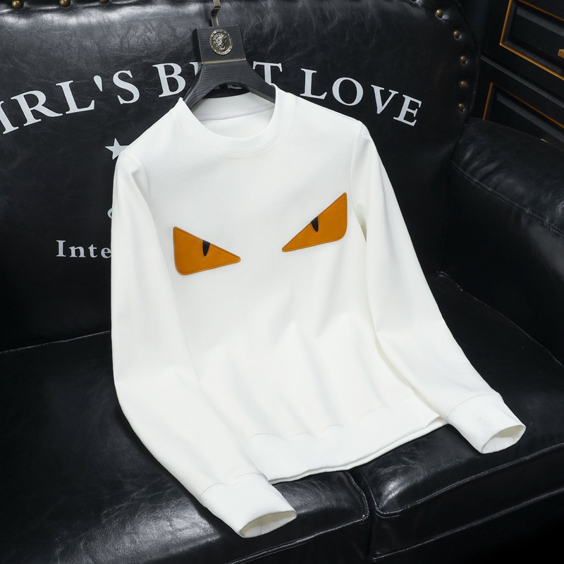 ヨーロッパ風ファッションメンズスウェットシャツ、小さなモンスター刺繍入り、2025秋冬新作、インナーウェア、長袖プルオーバー、ラウンドネックトップス