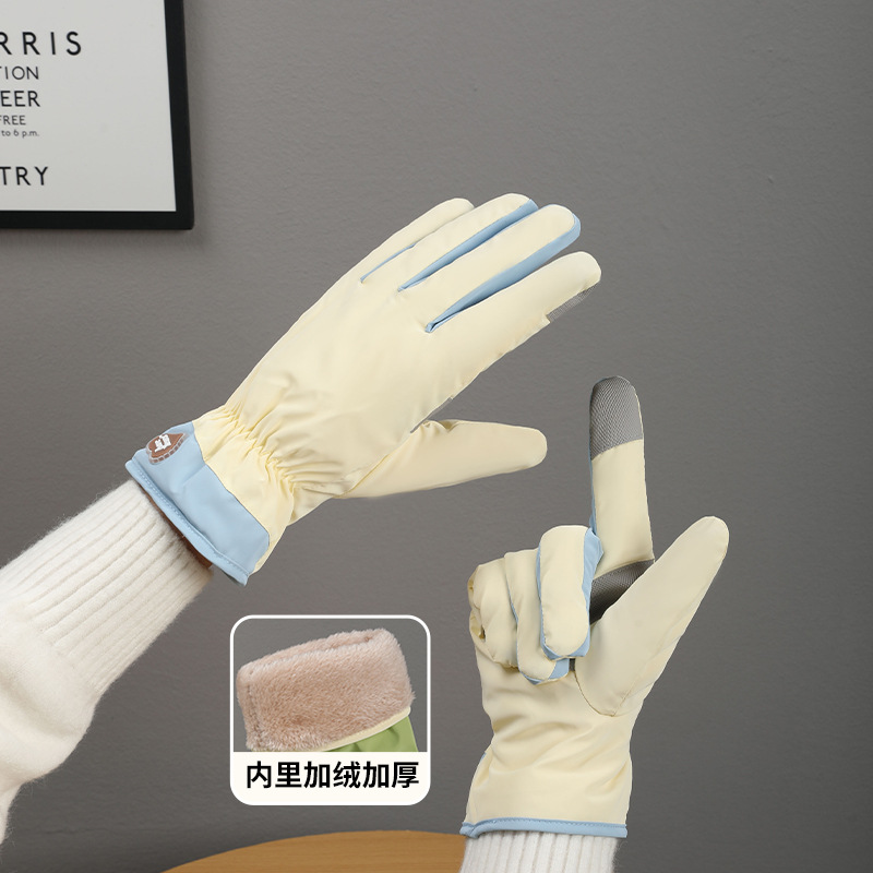 冬季保暖手套加厚绒韩系可爱学生触屏户外防滑防水开车骑行手套女