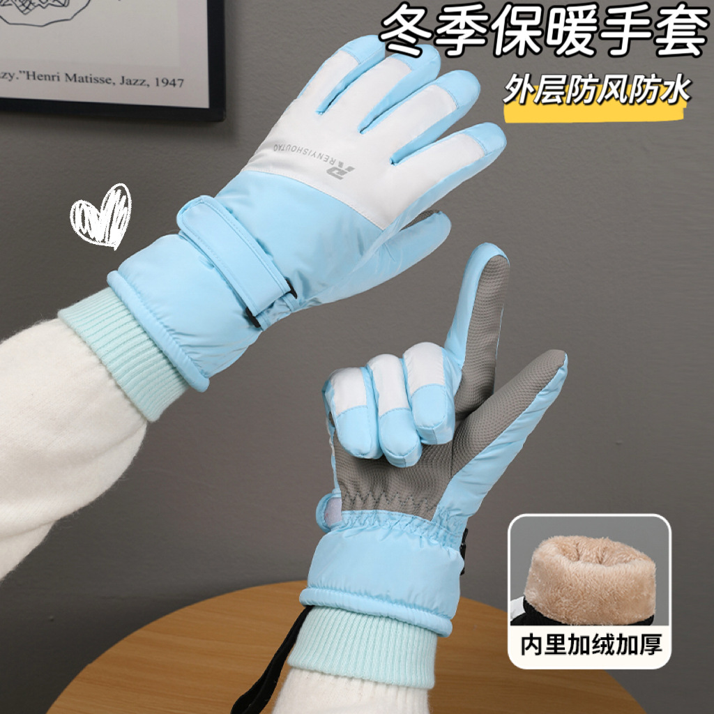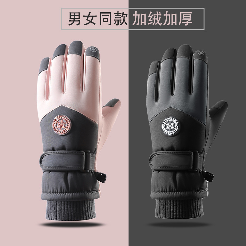 冬季保暖手套女防风防泼水加绒加厚防滑可触屏情侣骑行滑雪手套男