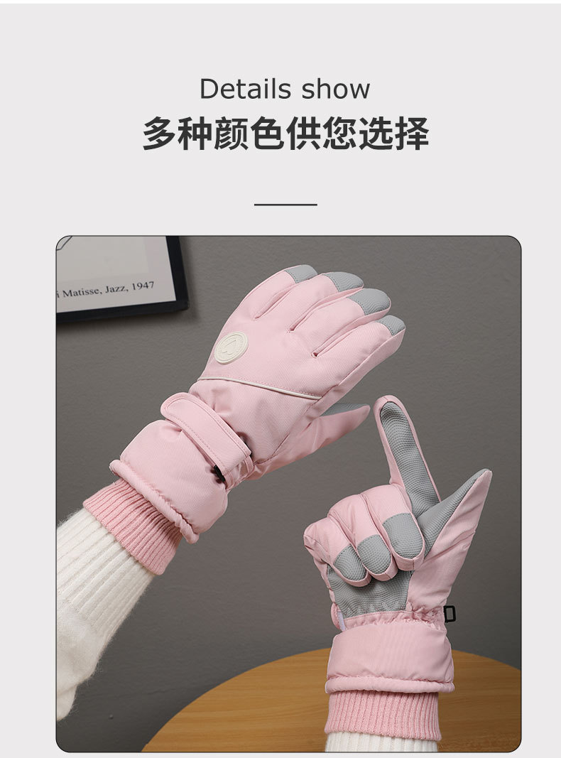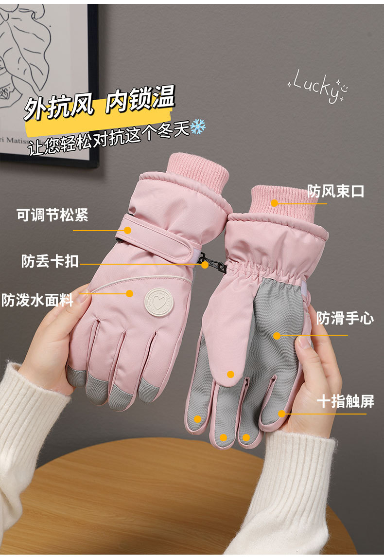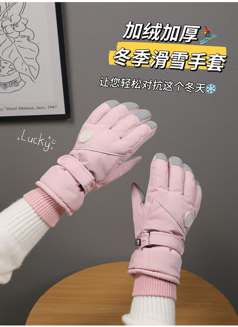 冬季保暖滑雪手套女士加绒加厚防风防水触屏骑行户外运动保暖手套