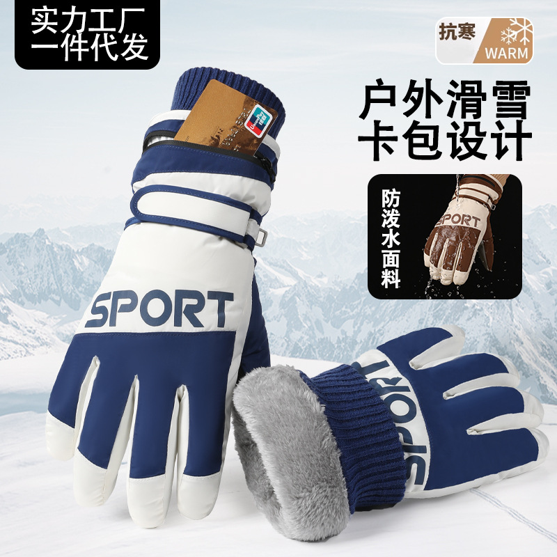 跨境滑雪手套女冬加绒厚防水耐寒保暖触屏户外防风骑行滑雪手套男