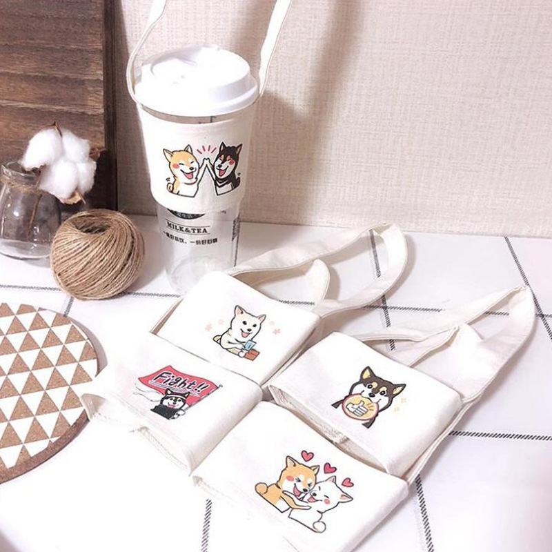 現物メーカーカスタム飲料バッグ漫画ミルクティーカップカバーキャンバス手提げ袋コーヒー手回しカップバッグ布袋