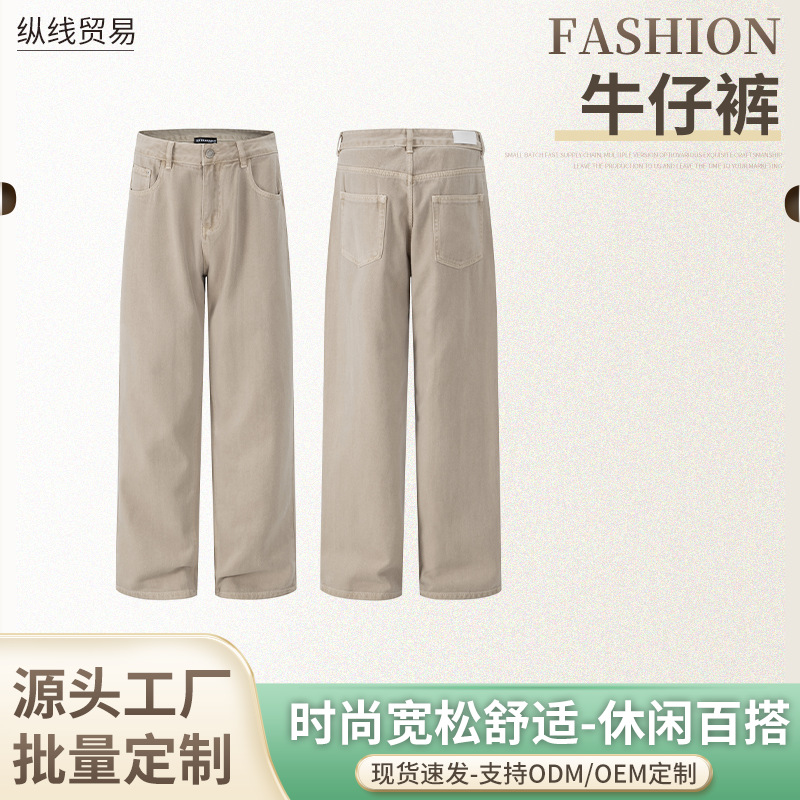 Zongxian Trade 2025 新四季ルーズオーバーオールストレートワイドレッグジーンズ男性と女性のワイドレッグカジュアルパンツ