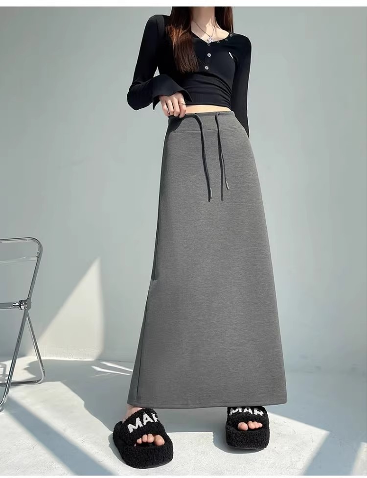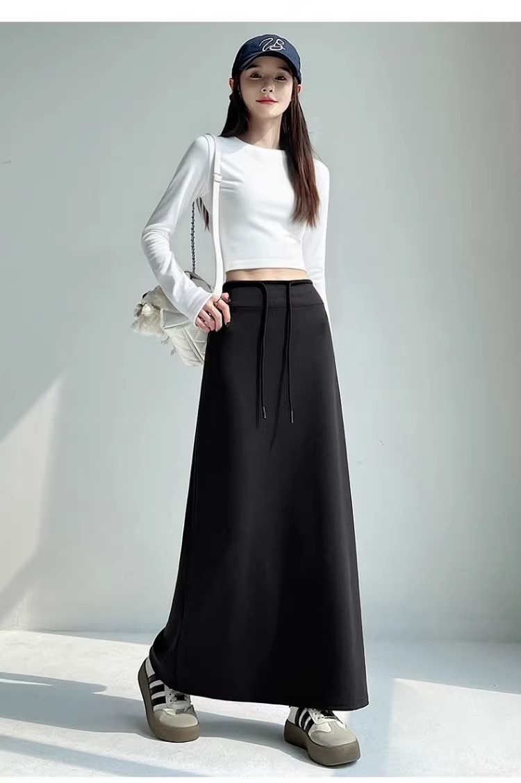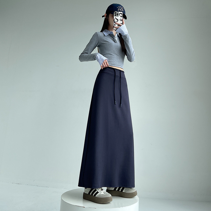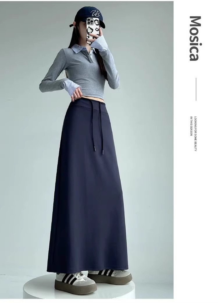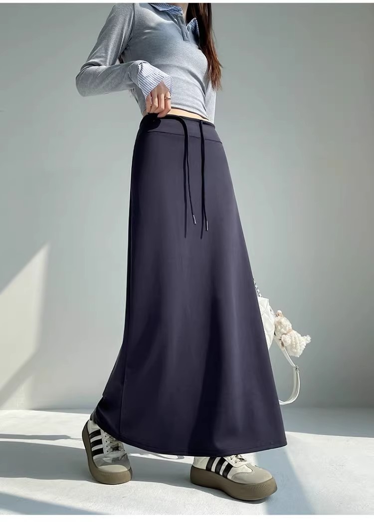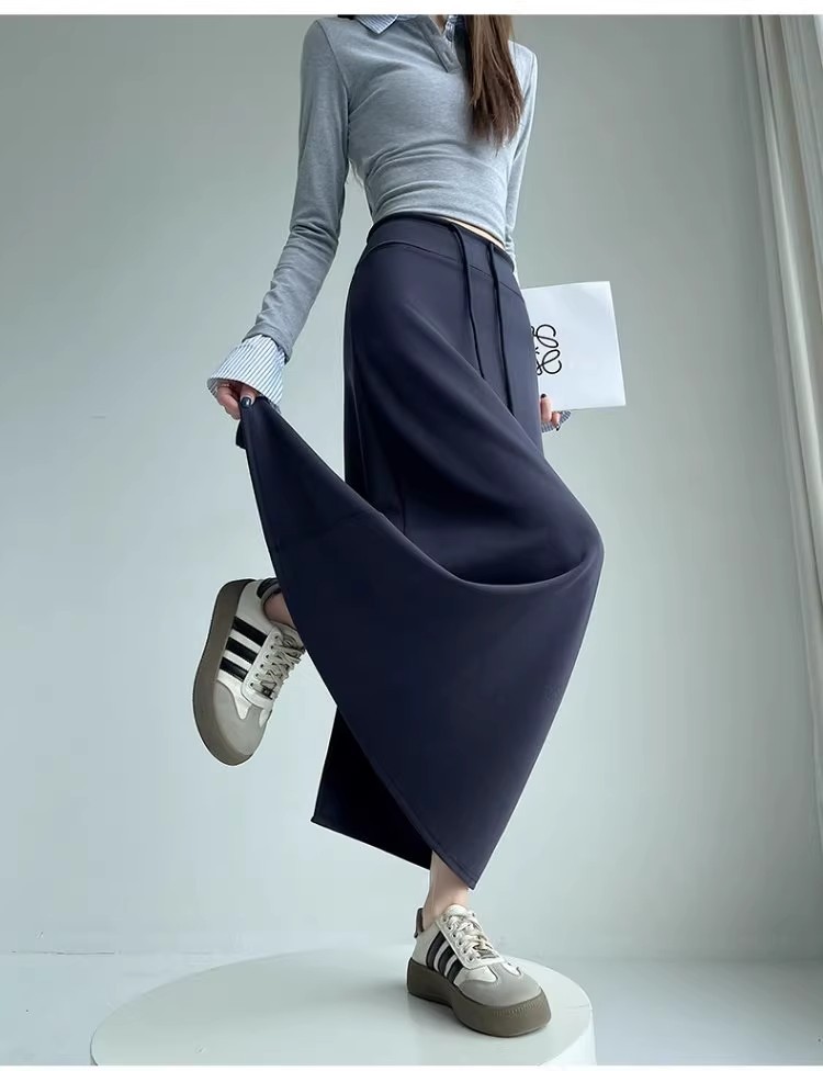 2025 春の新韓国スタイルカジュアル無地多用途露出防止つぼみスカート弾性ハイウエスト A ラインスカート