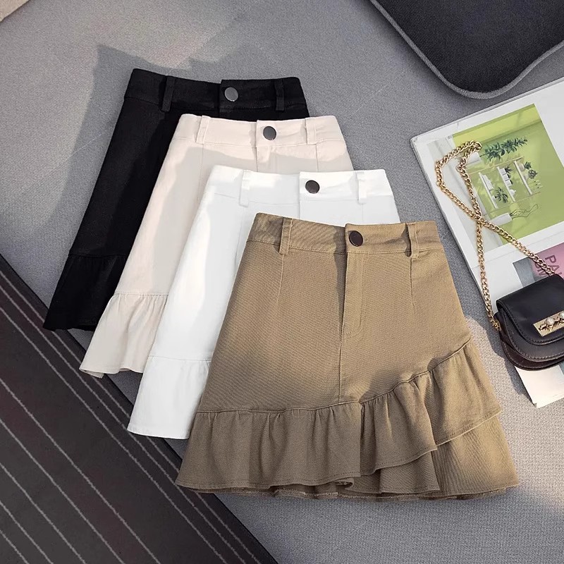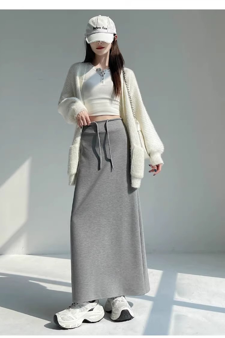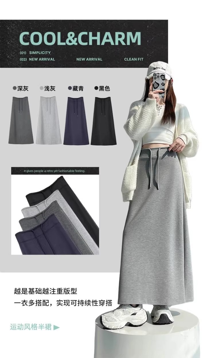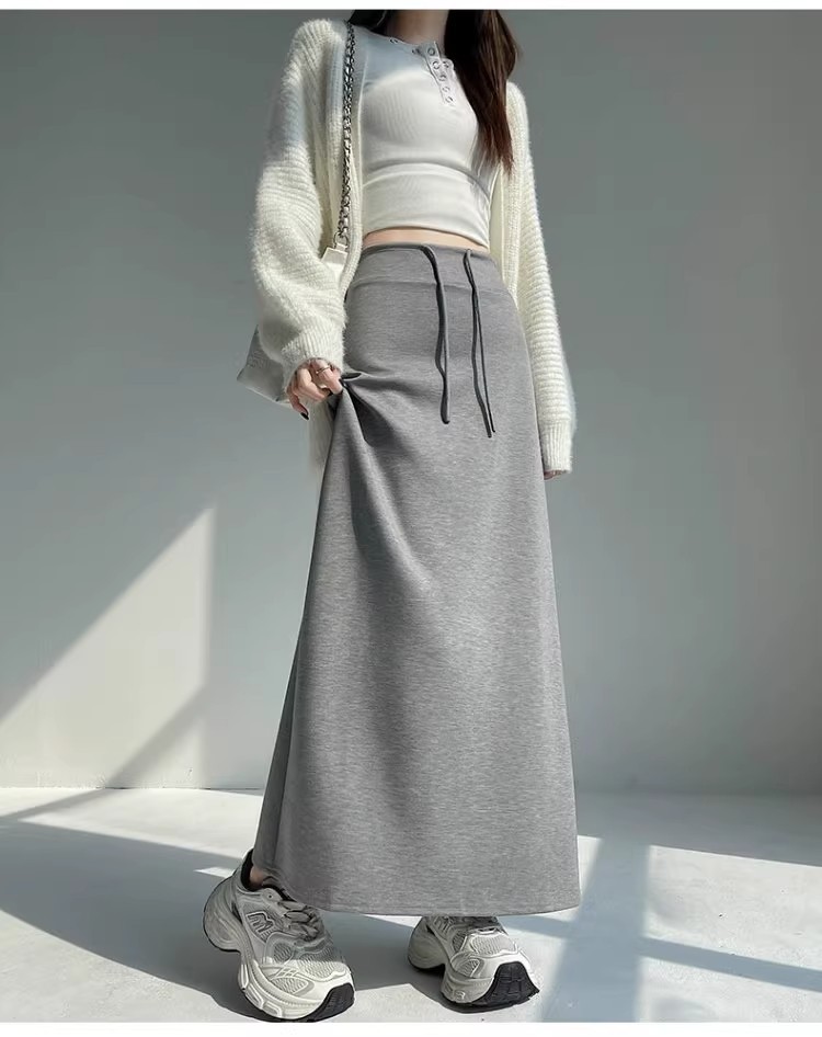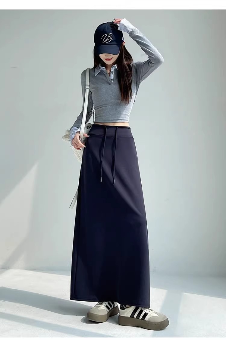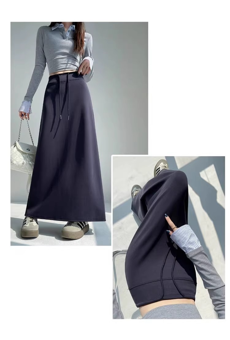 2025 春の新韓国スタイルカジュアル無地多用途露出防止つぼみスカート弾性ハイウエスト A ラインスカート