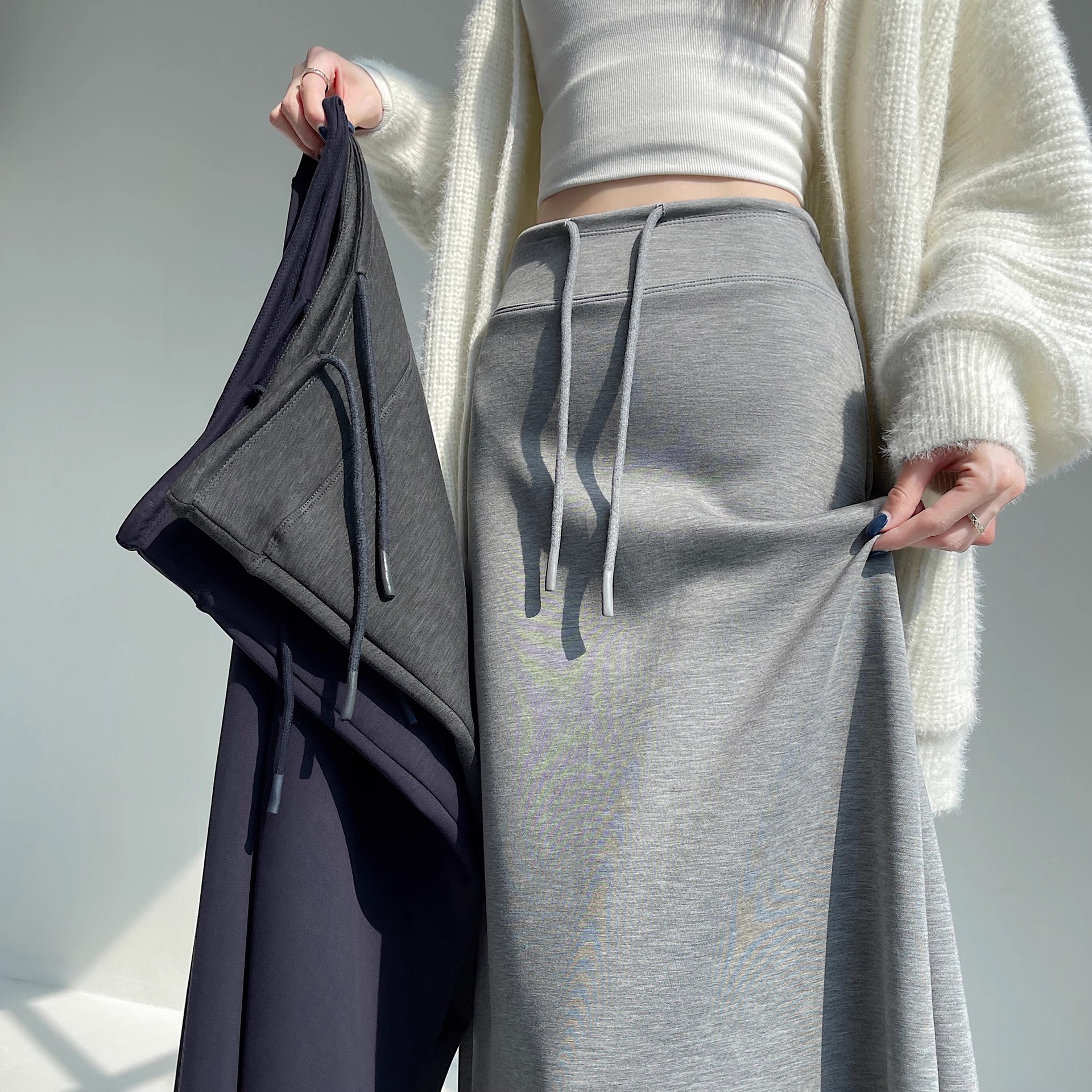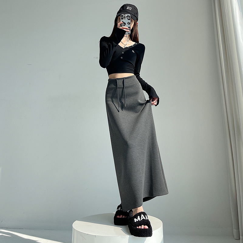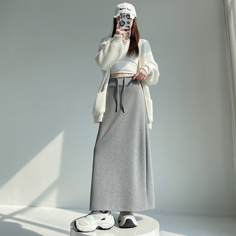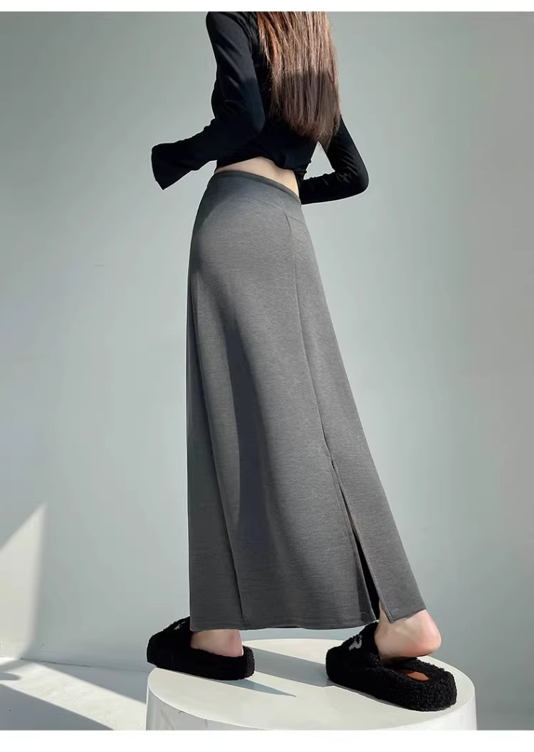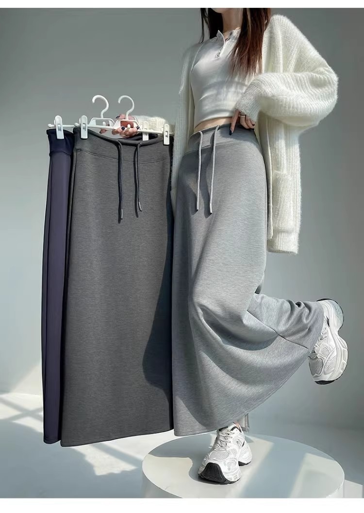 灰色运动半身裙女春秋新款高腰直筒开叉a字半裙垂坠感卫裙长裙子