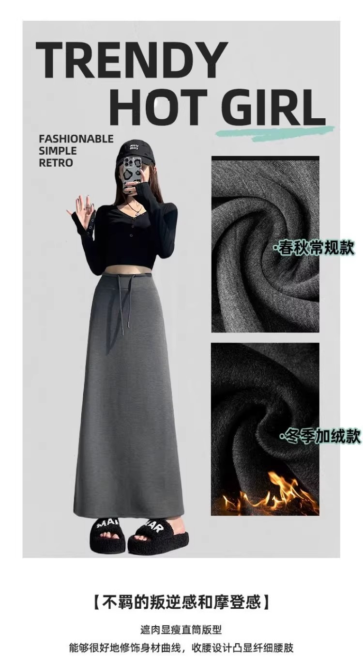 运动半身裙女秋冬2025新款松紧高腰显瘦休闲百搭开叉a字包臀长裙