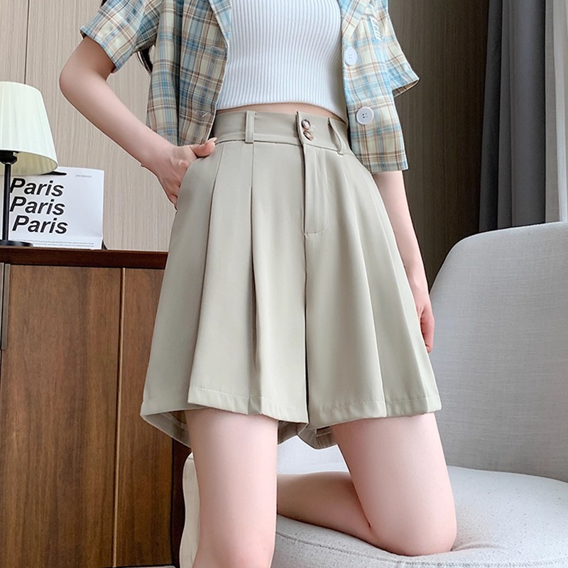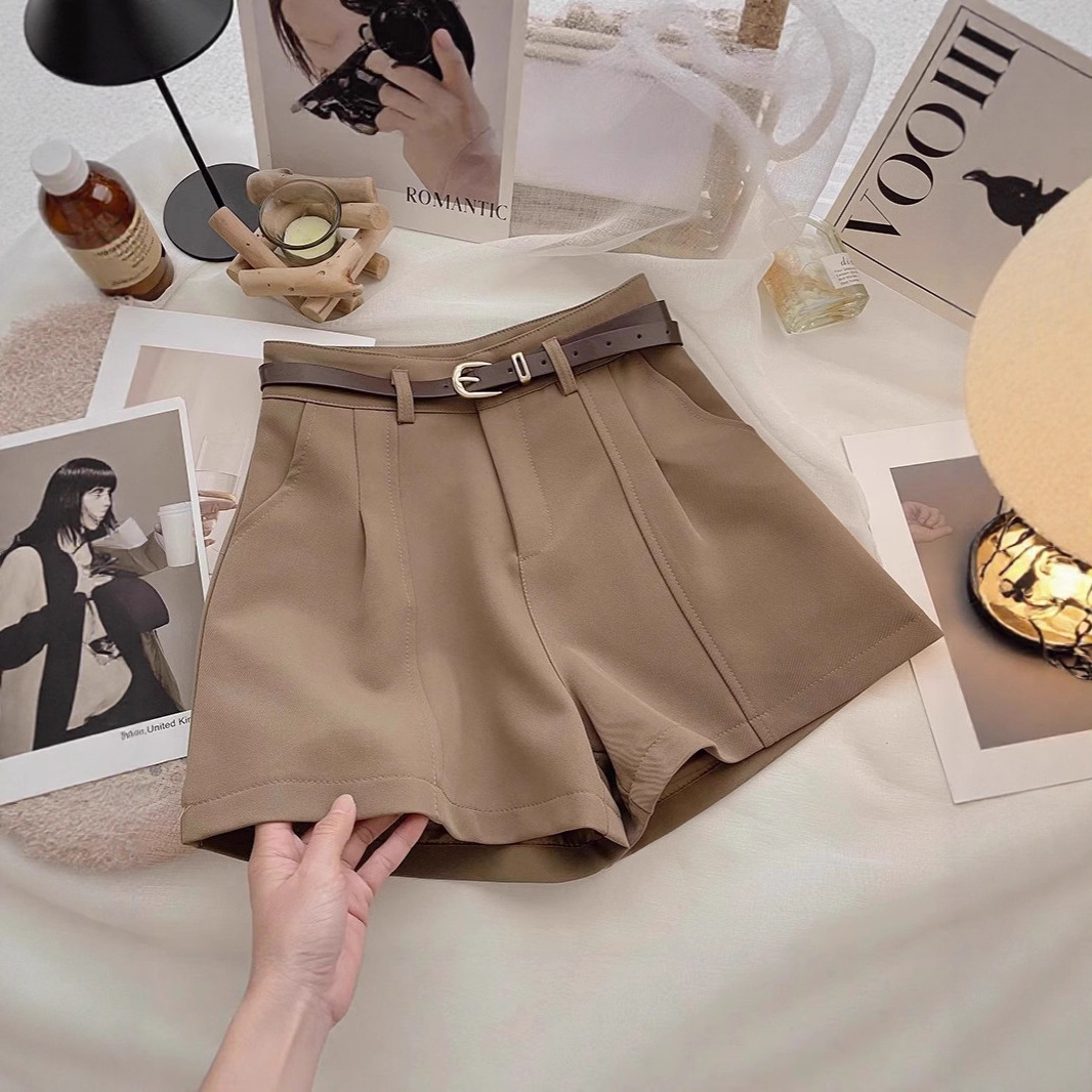 2026年春新作 レディース カジュアルショートパンツ 韓国風 ins風 香港風 レトロ シンプル ハイウエスト Aライン ワイドパンツ