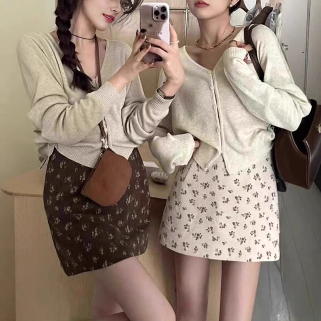 2025 秋冬花柄コーデュロイヒップカバーショートスカートレディースデザインハイウエストカジュアル A ライン多用途気質スカート