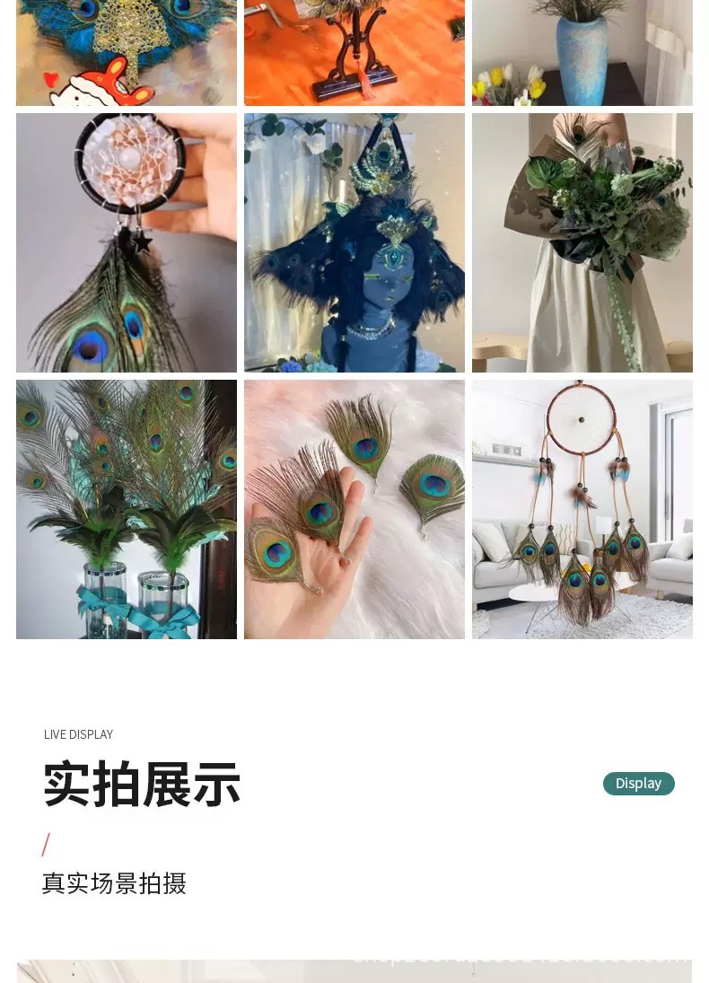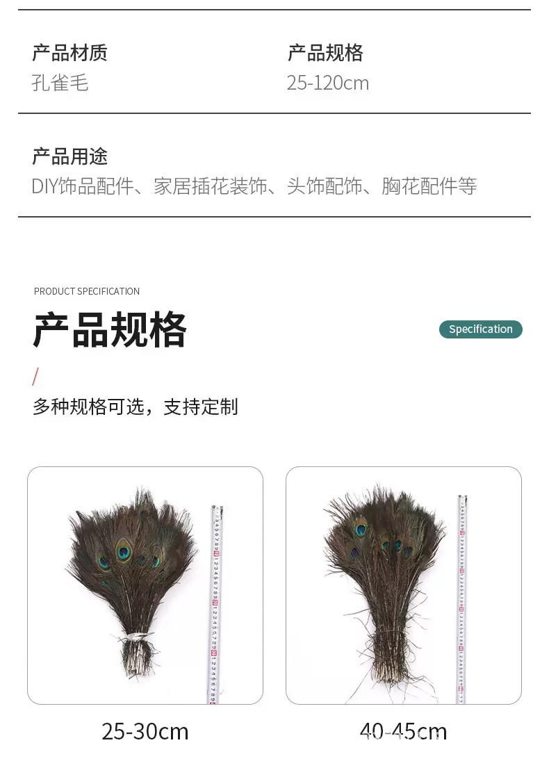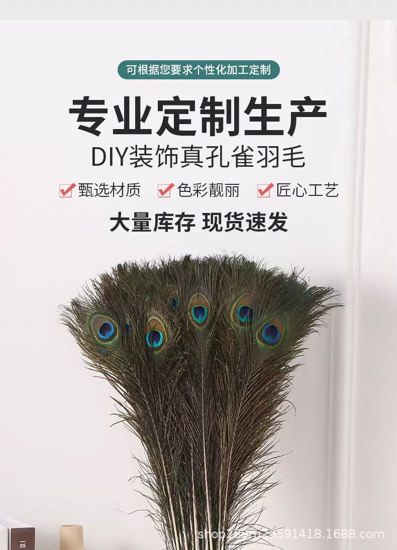 跨境优质天然孔雀毛25-120cm家居装饰长羽毛花瓶插花装饰孔雀羽毛