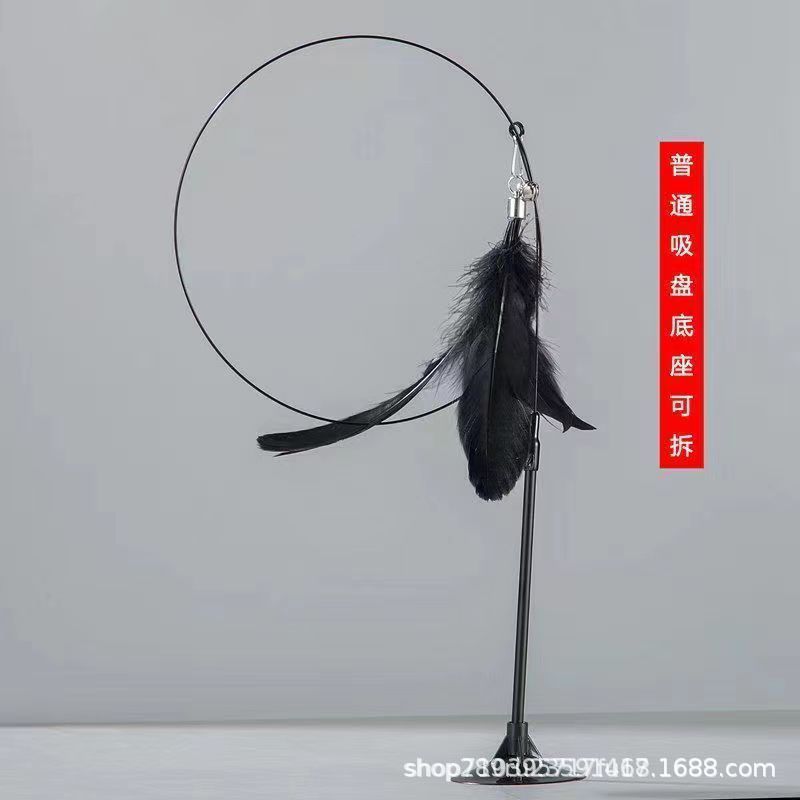 猫のおもちゃ、インタラクティブなロングポール、カラフルな羽とベル、自己楽しみと退屈解消のためのペット用品