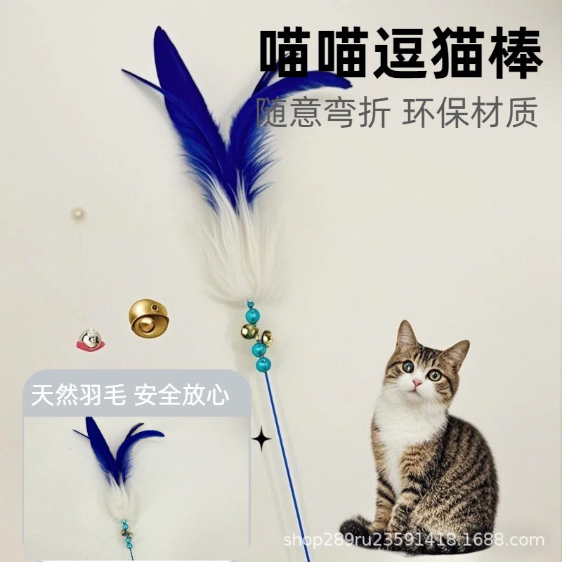 猫面白いスティック交換ヘッド卸売パール天然羽ペットのおもちゃ噛みつきにくい耐久性のある猫のインタラクション退屈を和らげる
