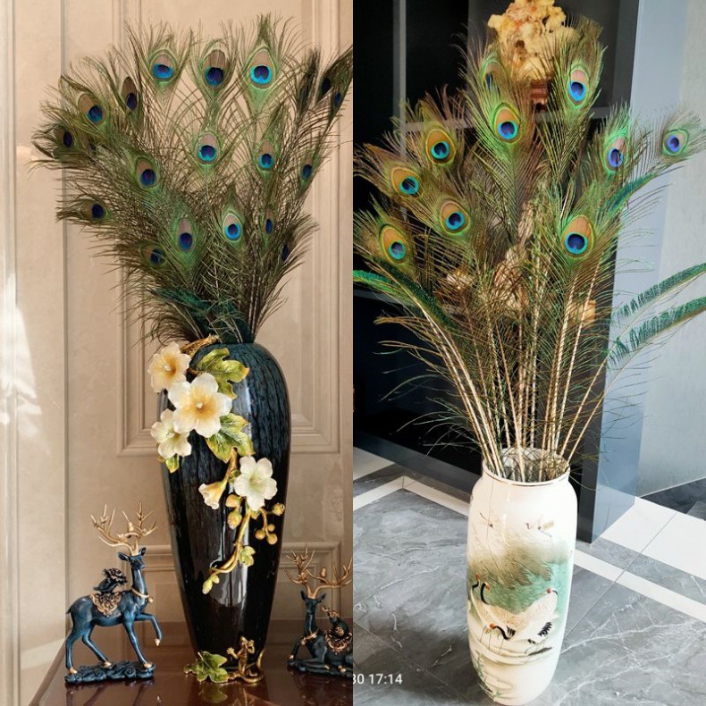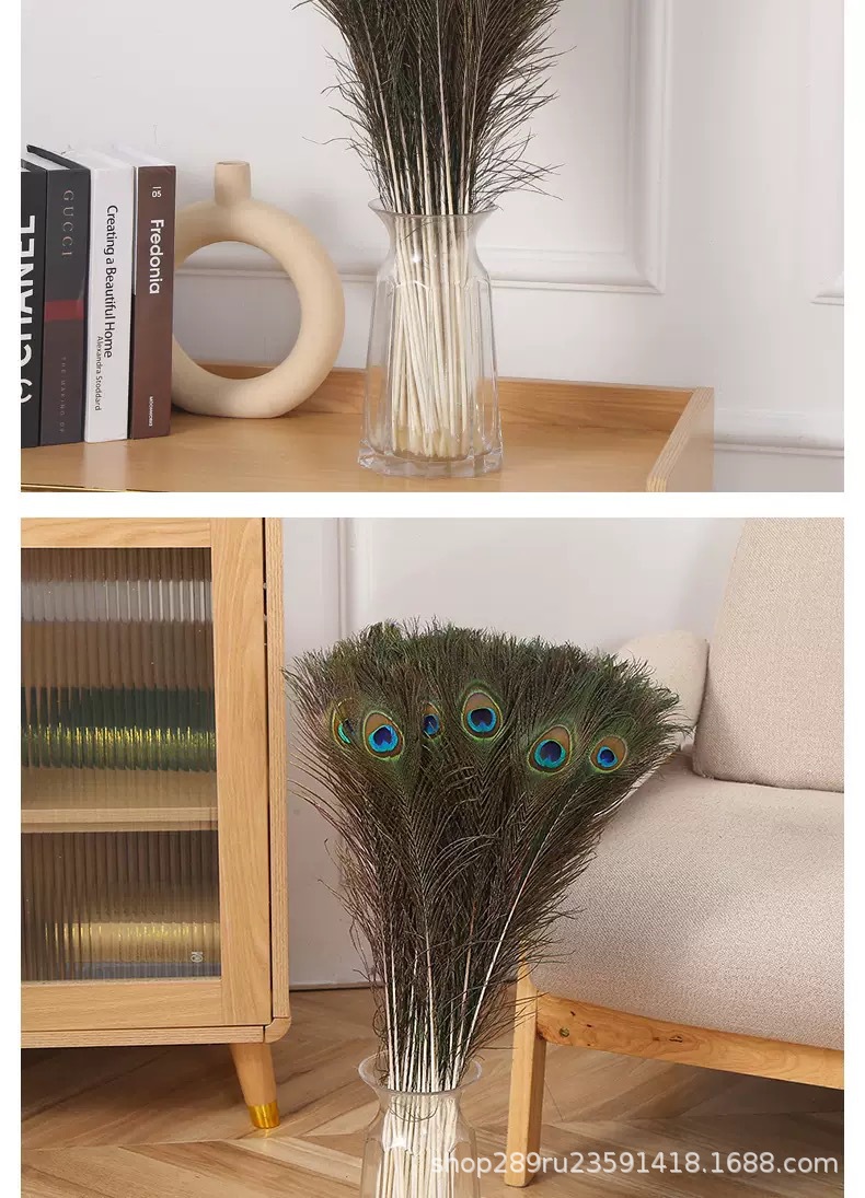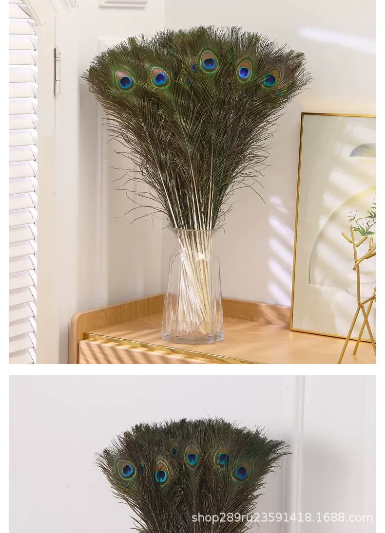 クロスボーダー上質天然ピーコック毛25-120cmホーム装飾長い羽花瓶生け花飾り孔雀羽