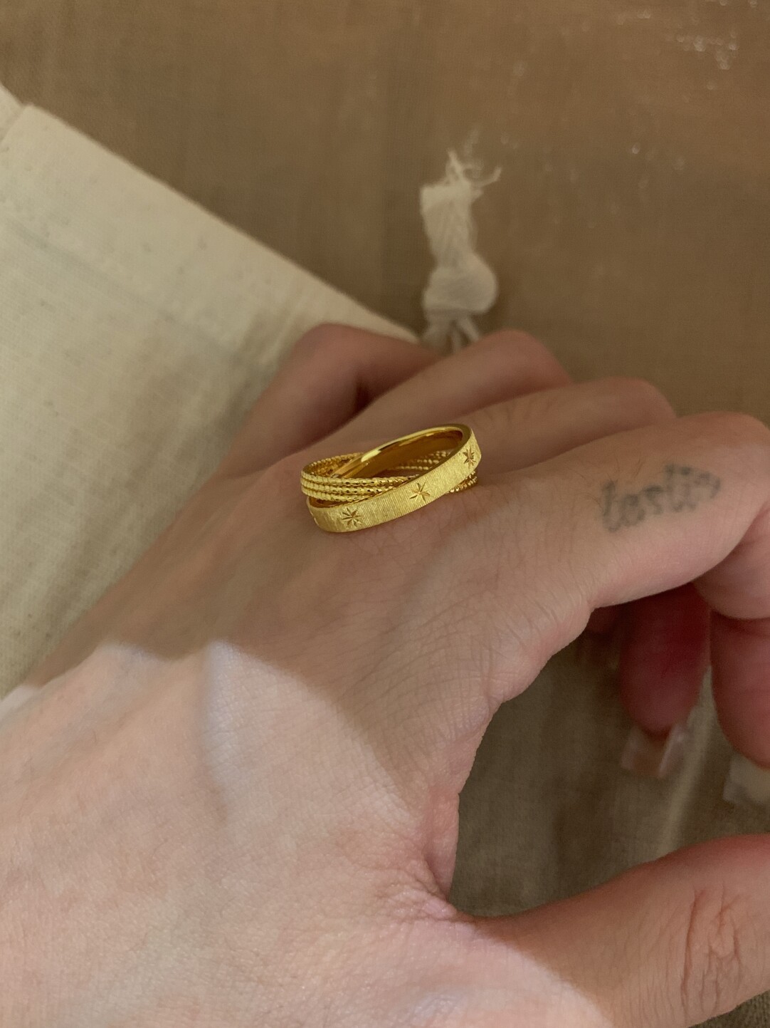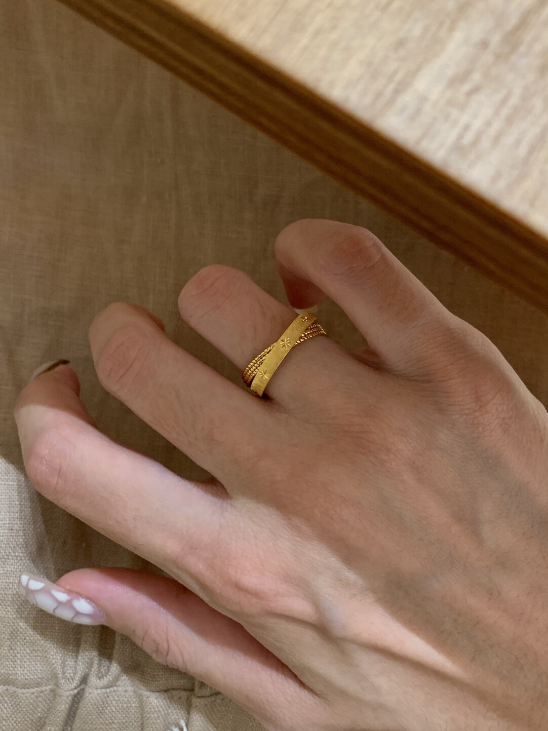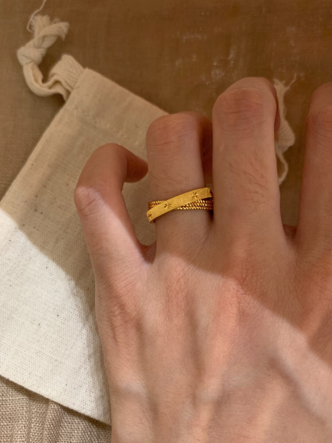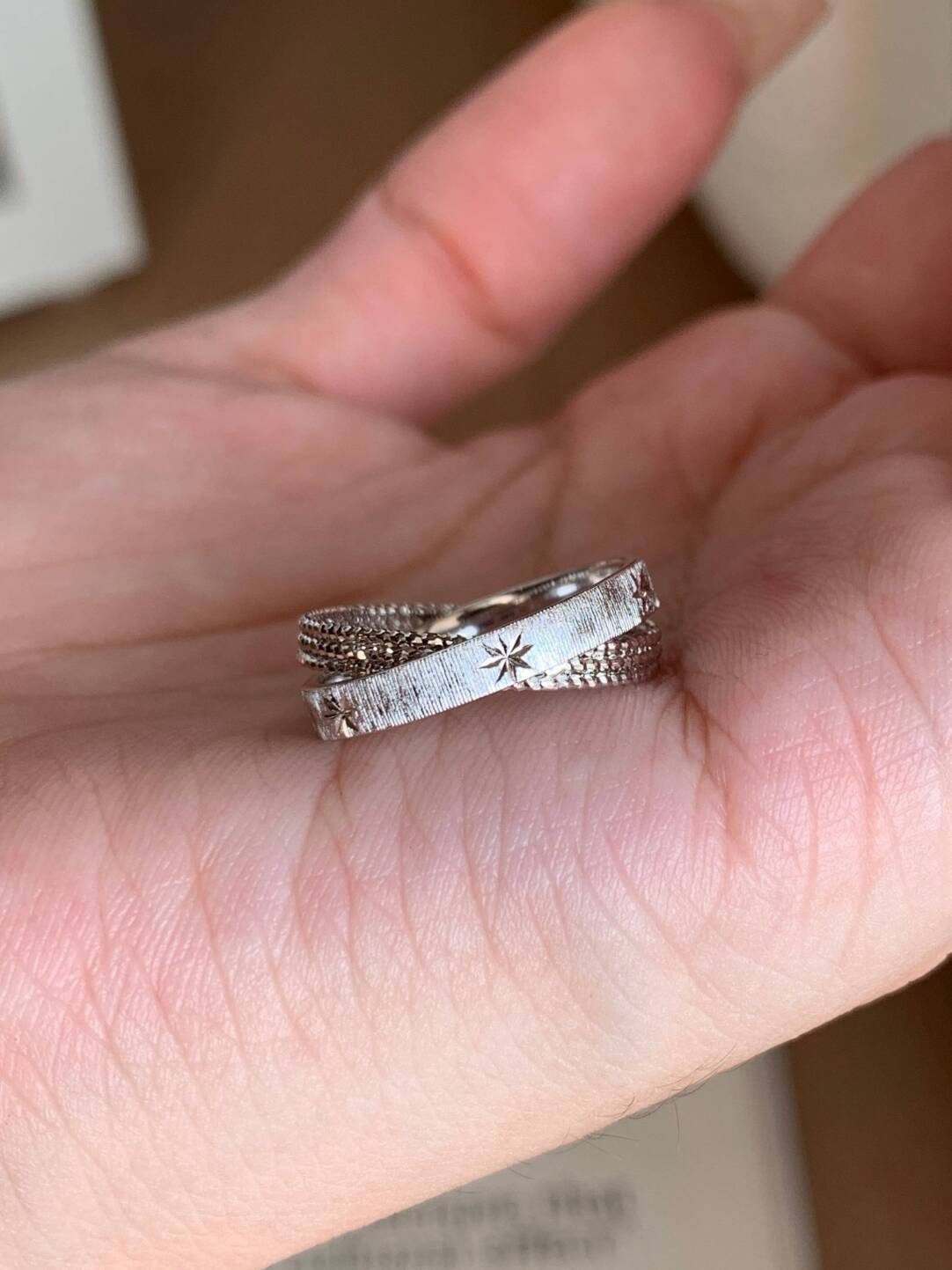 小红书爆款水星记小双环拉丝复古手工芒星戒指个性星芒清冷感指环