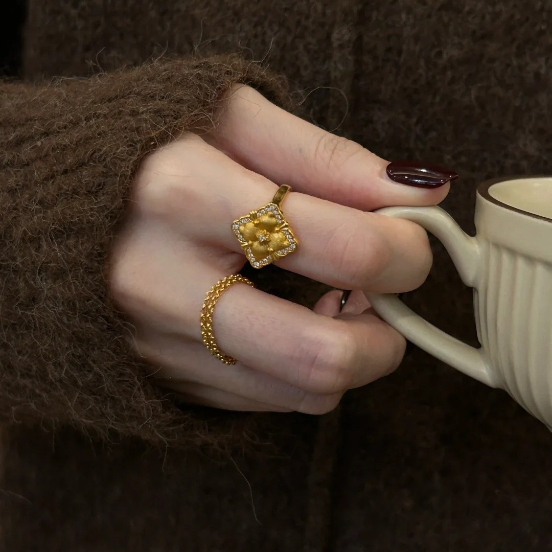 小紅書の新型アイリスの透かし彫りの指輪2024ファッションの軽豪華な大衆は個性の気質を設計します。