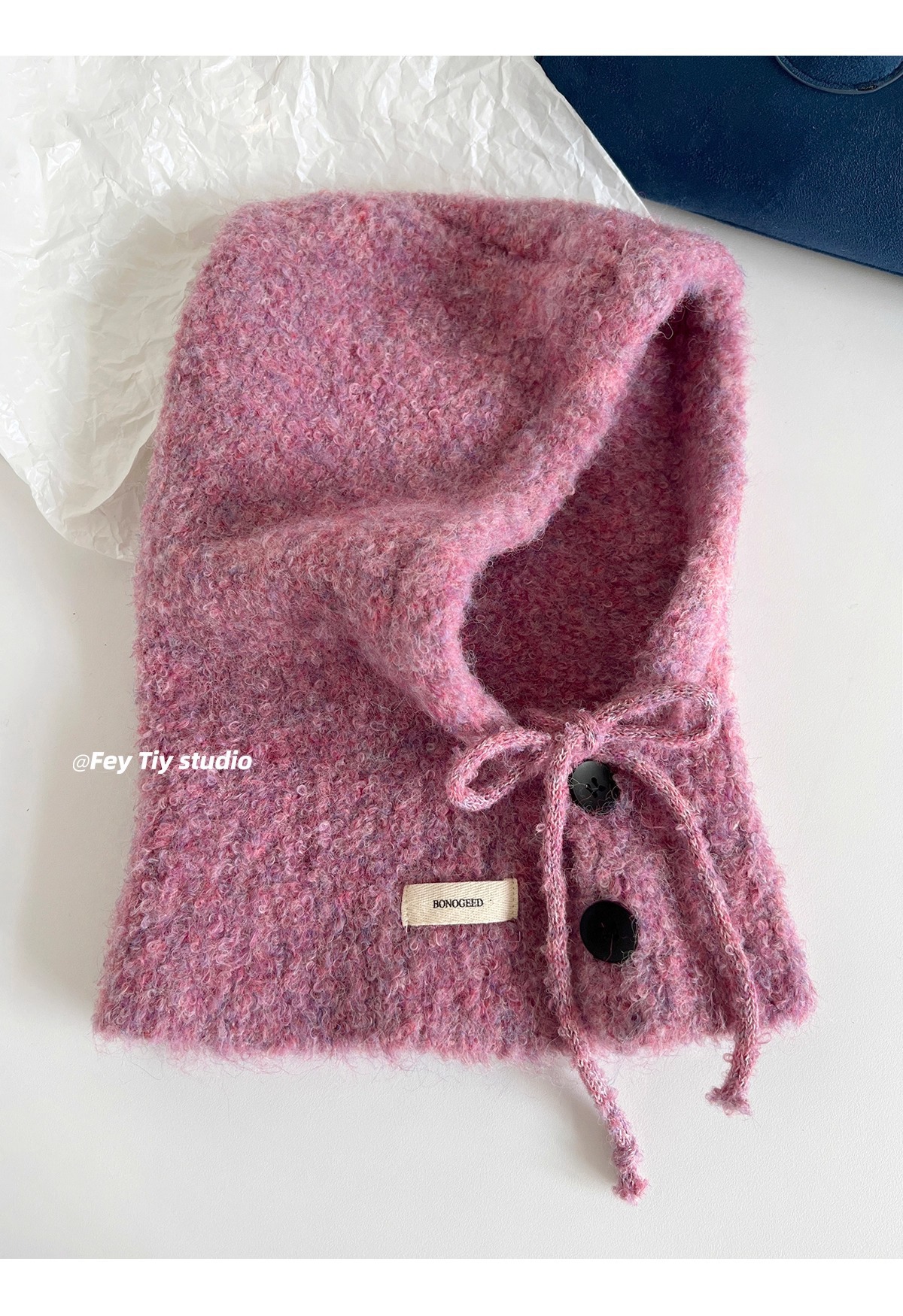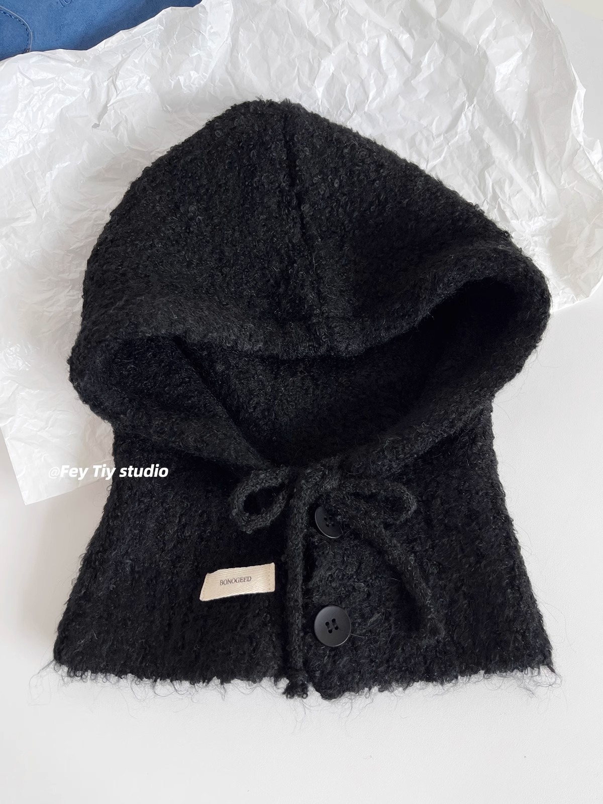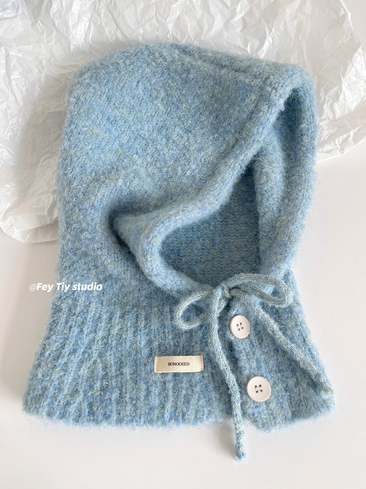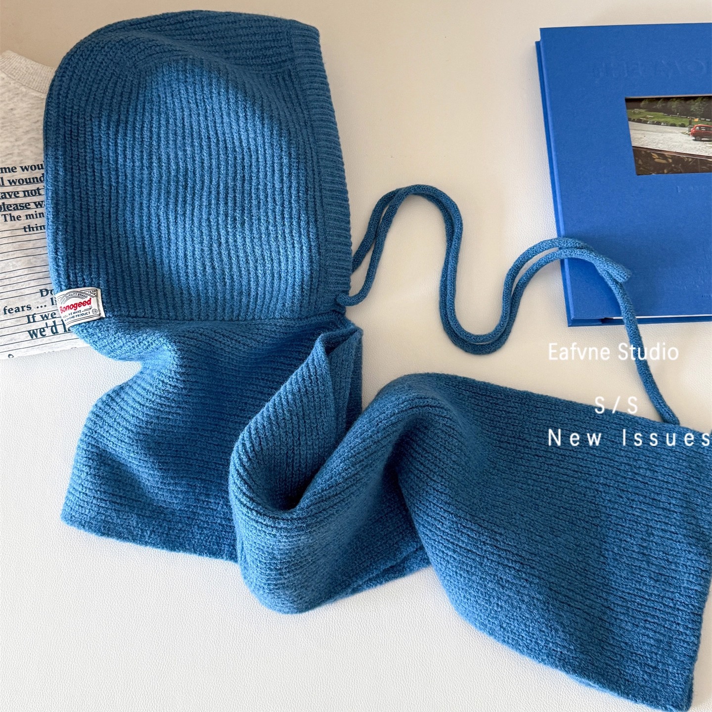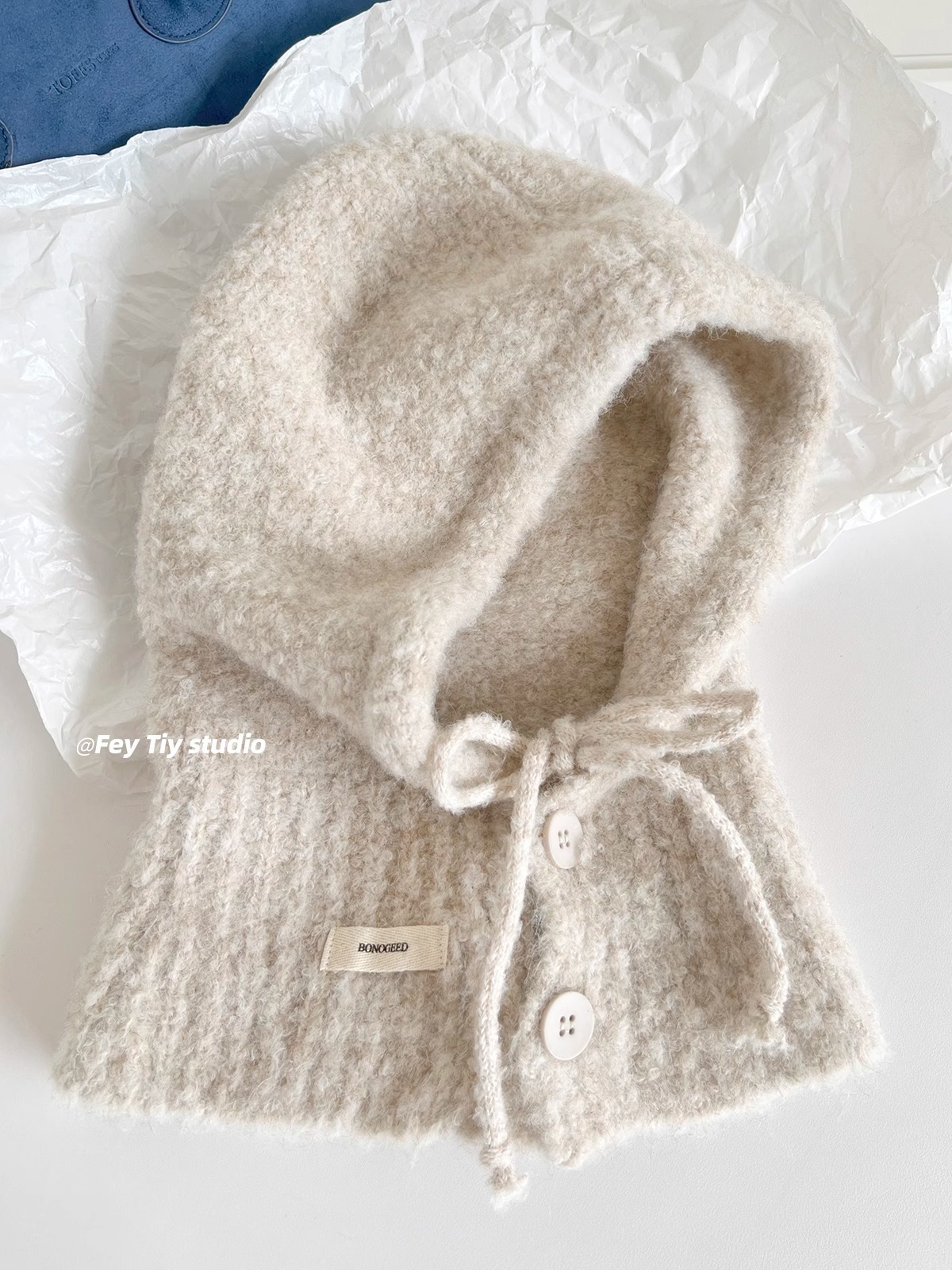 韩国订单羊毛混纺材质~羊毛版!巴拉克拉针织帽围脖一体帽子保暖