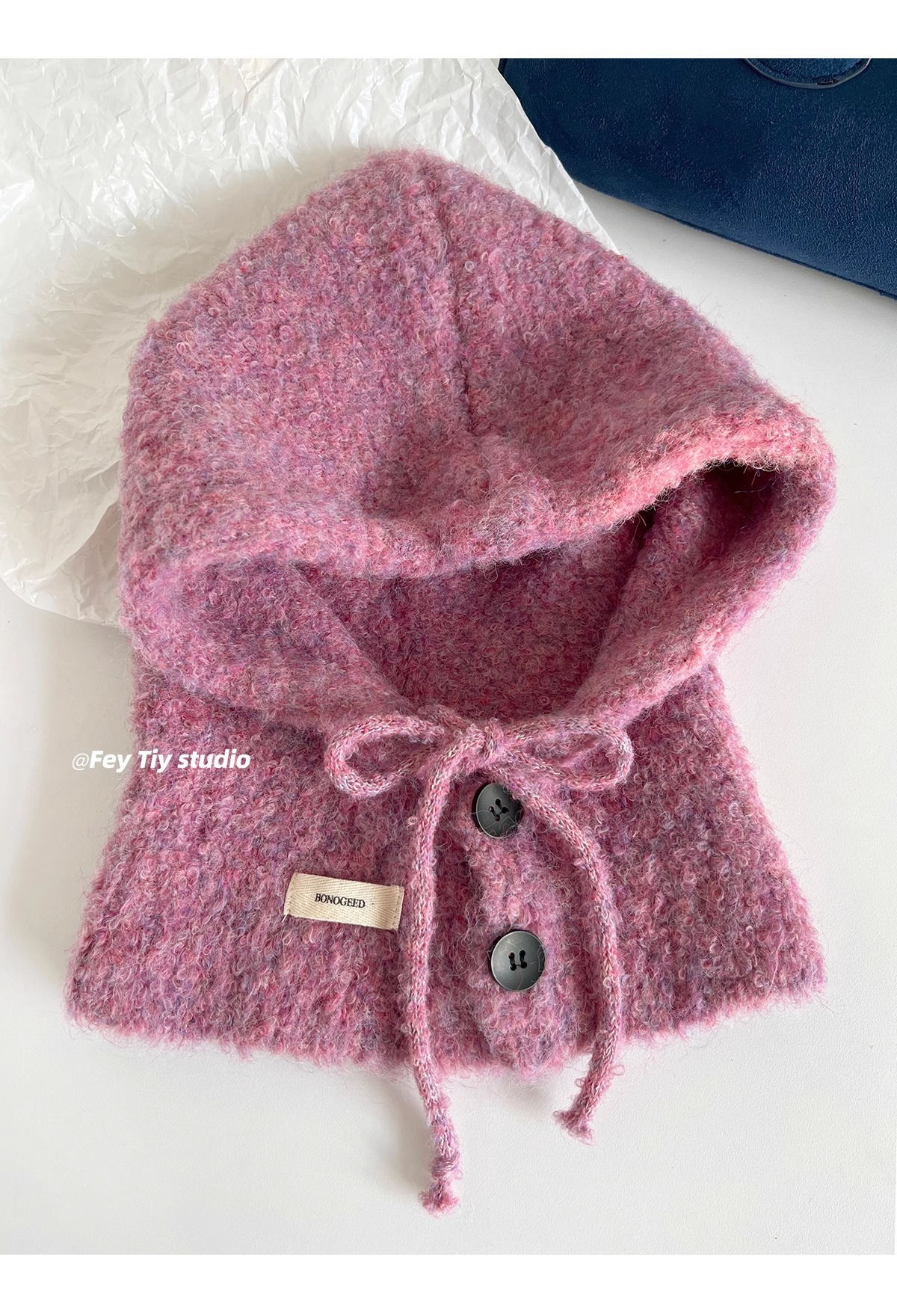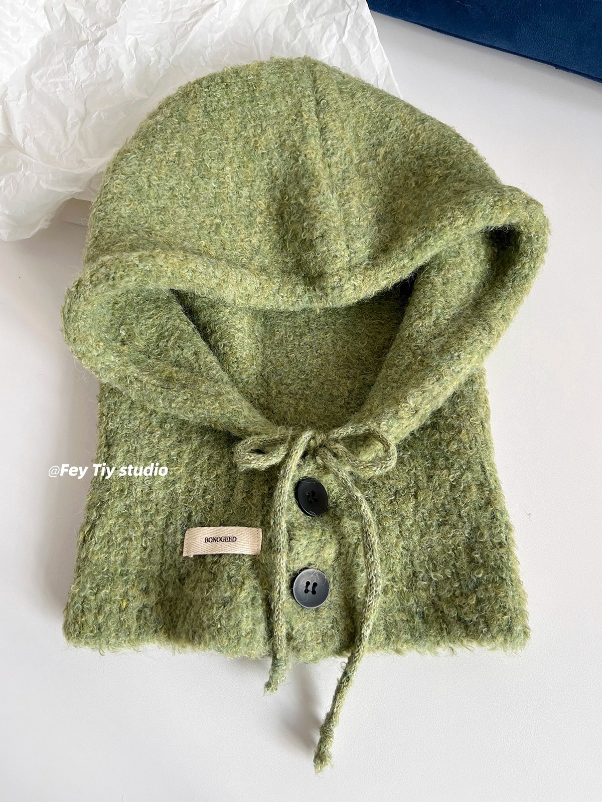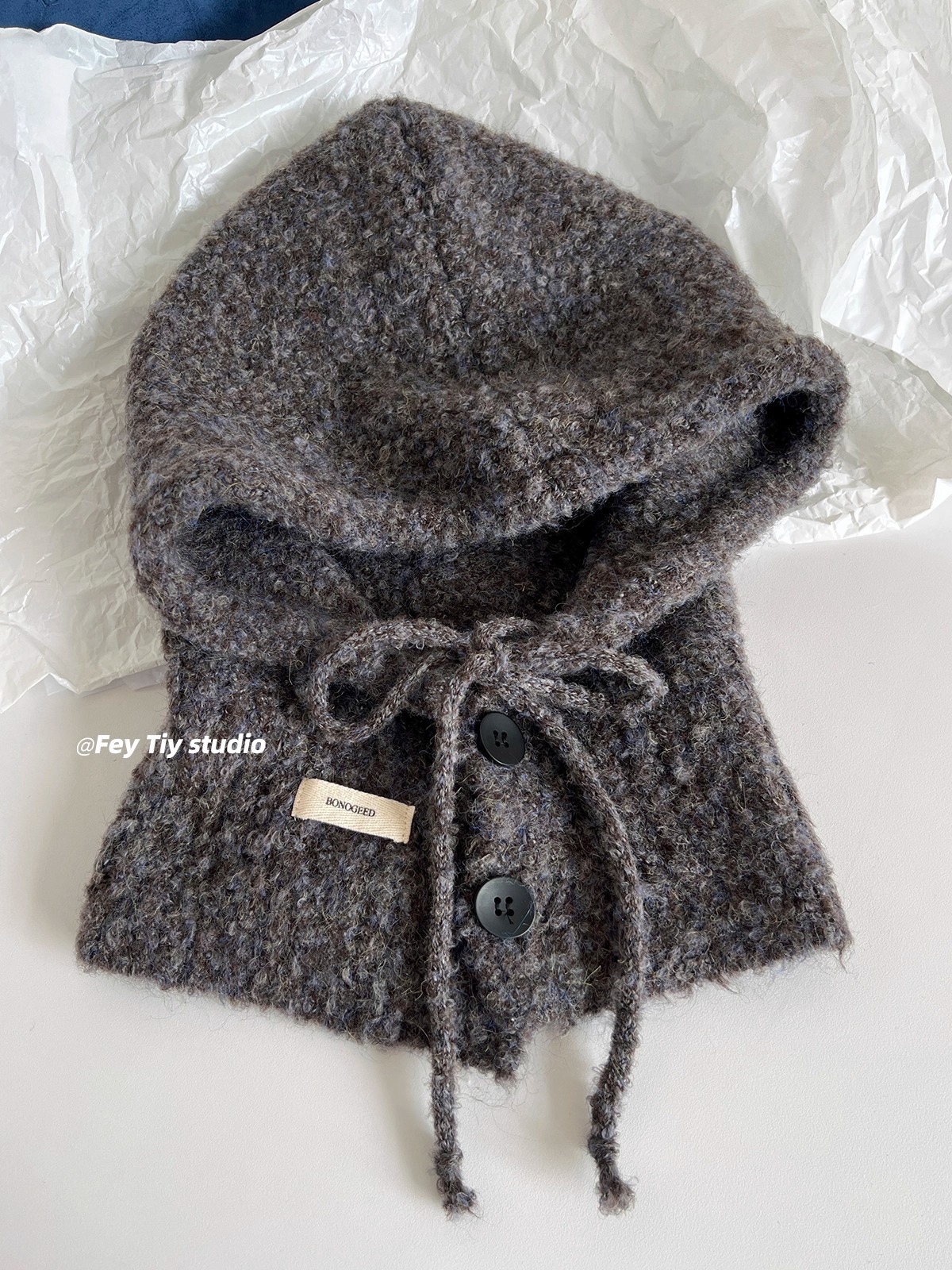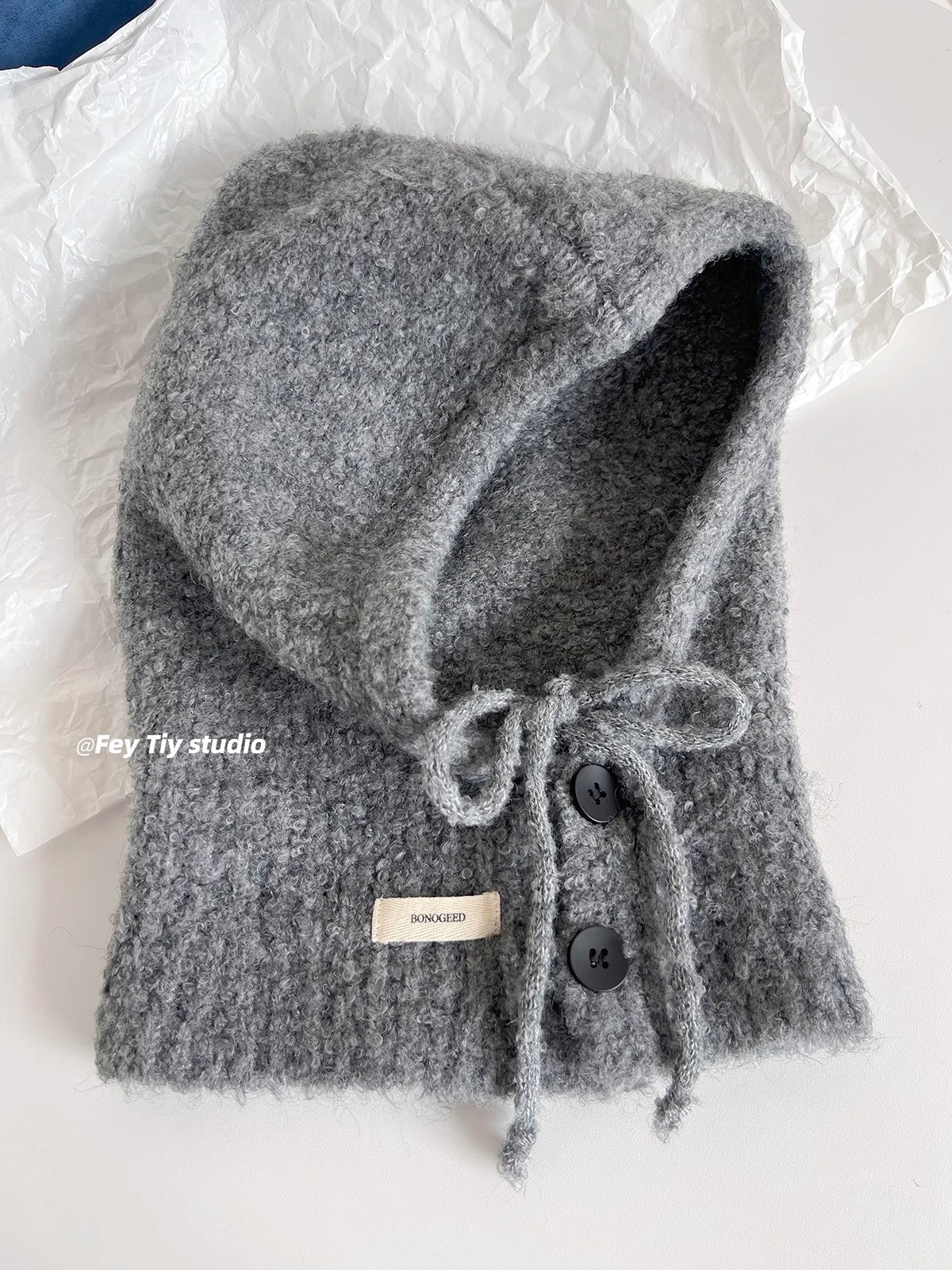韩国订单羊毛混纺材质~羊毛版!巴拉克拉针织帽围脖一体帽子保暖