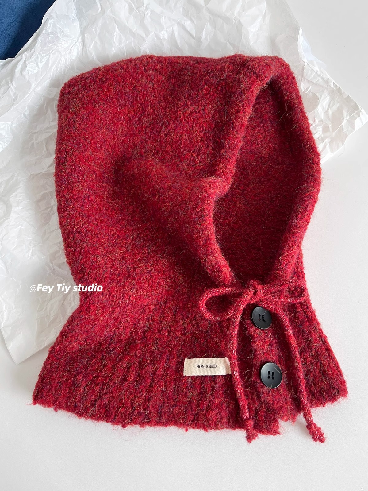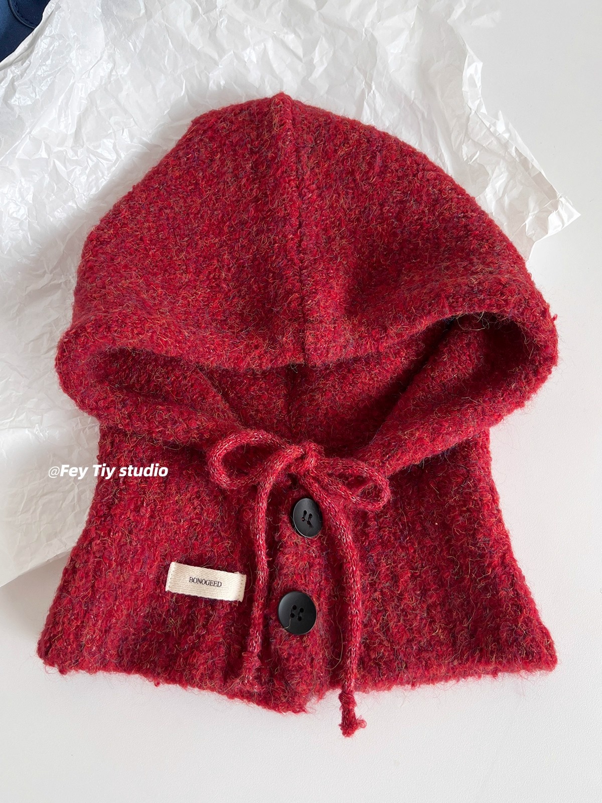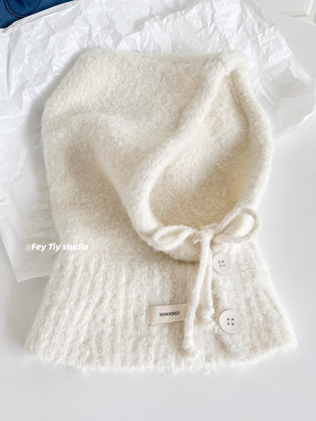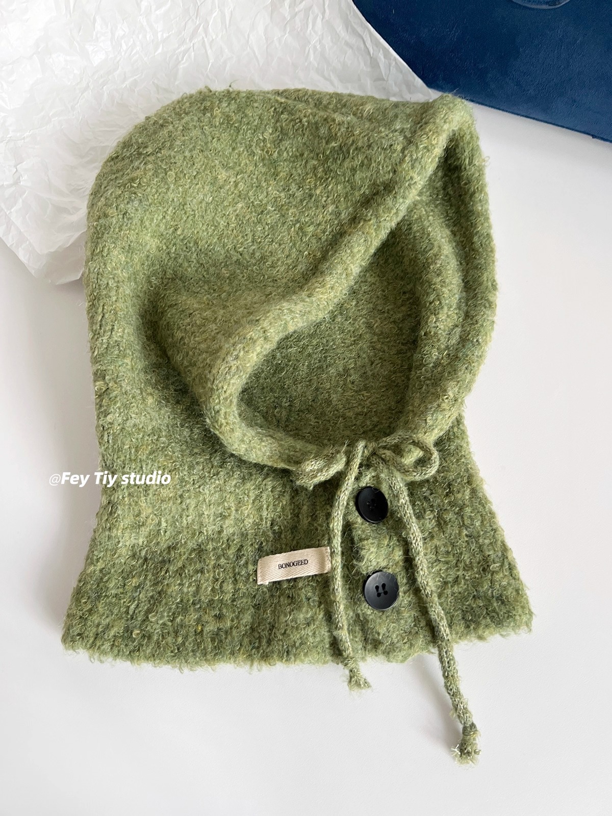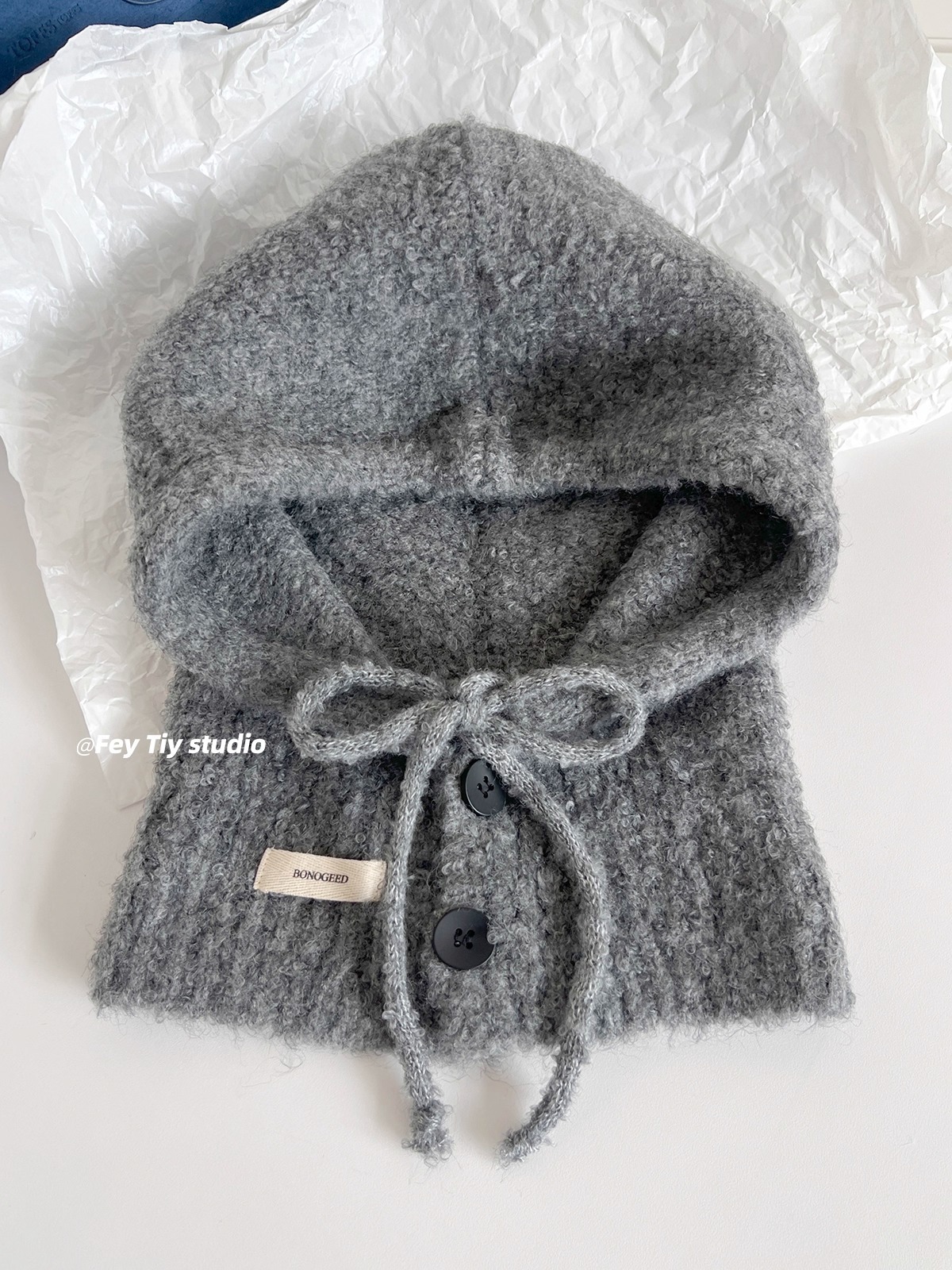 韩国订单羊毛混纺材质~羊毛版!巴拉克拉针织帽围脖一体帽子保暖