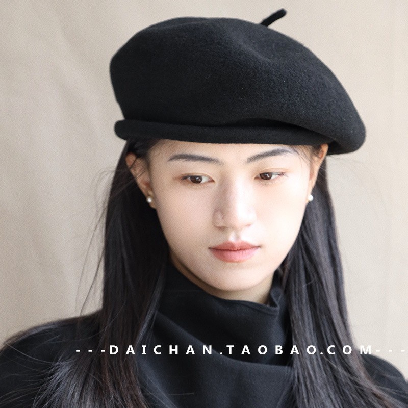 高品质100%羊毛次材质秋冬季新款羊毛呢大头围贝雷帽子女韩版网红