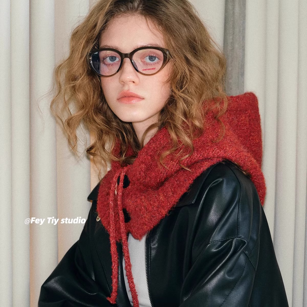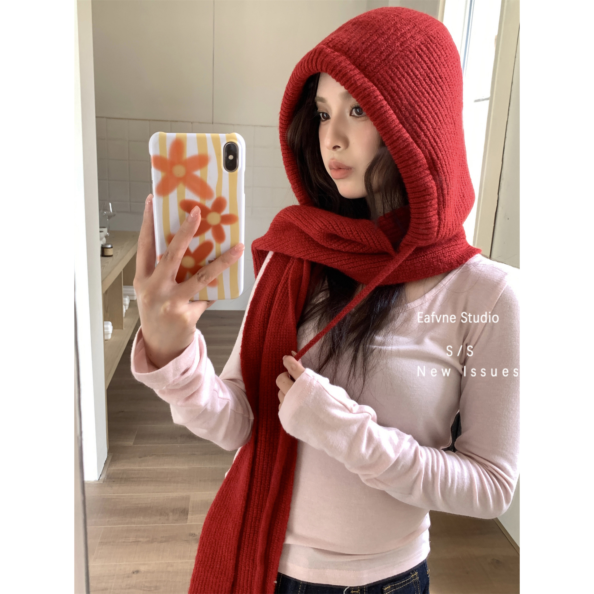 韩国复古时髦巴拉克拉针织帽女秋冬百搭围脖一体帽保暖包头帽