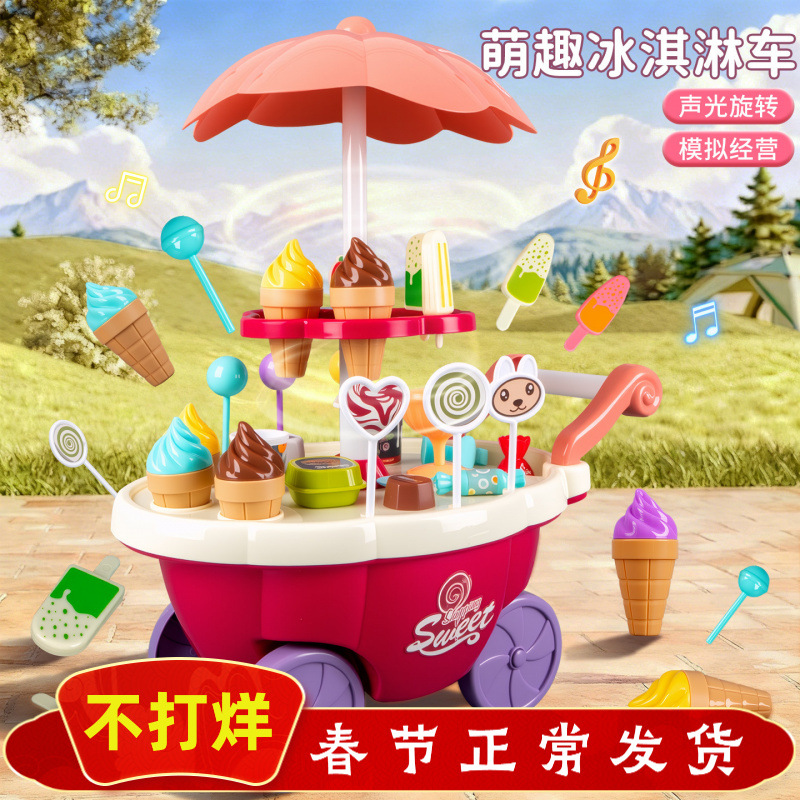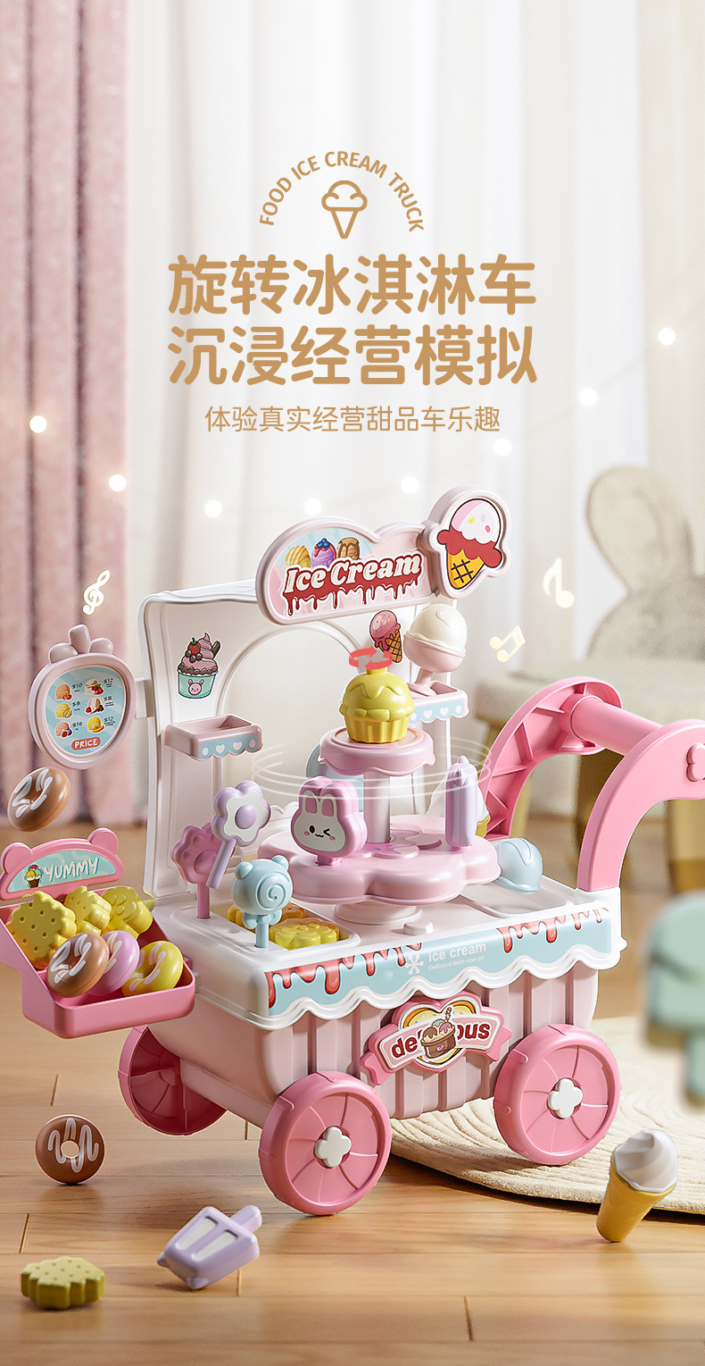 儿童过家家冰淇淋车音乐玩具女孩糖果雪糕手推车冰激凌机宝宝套装