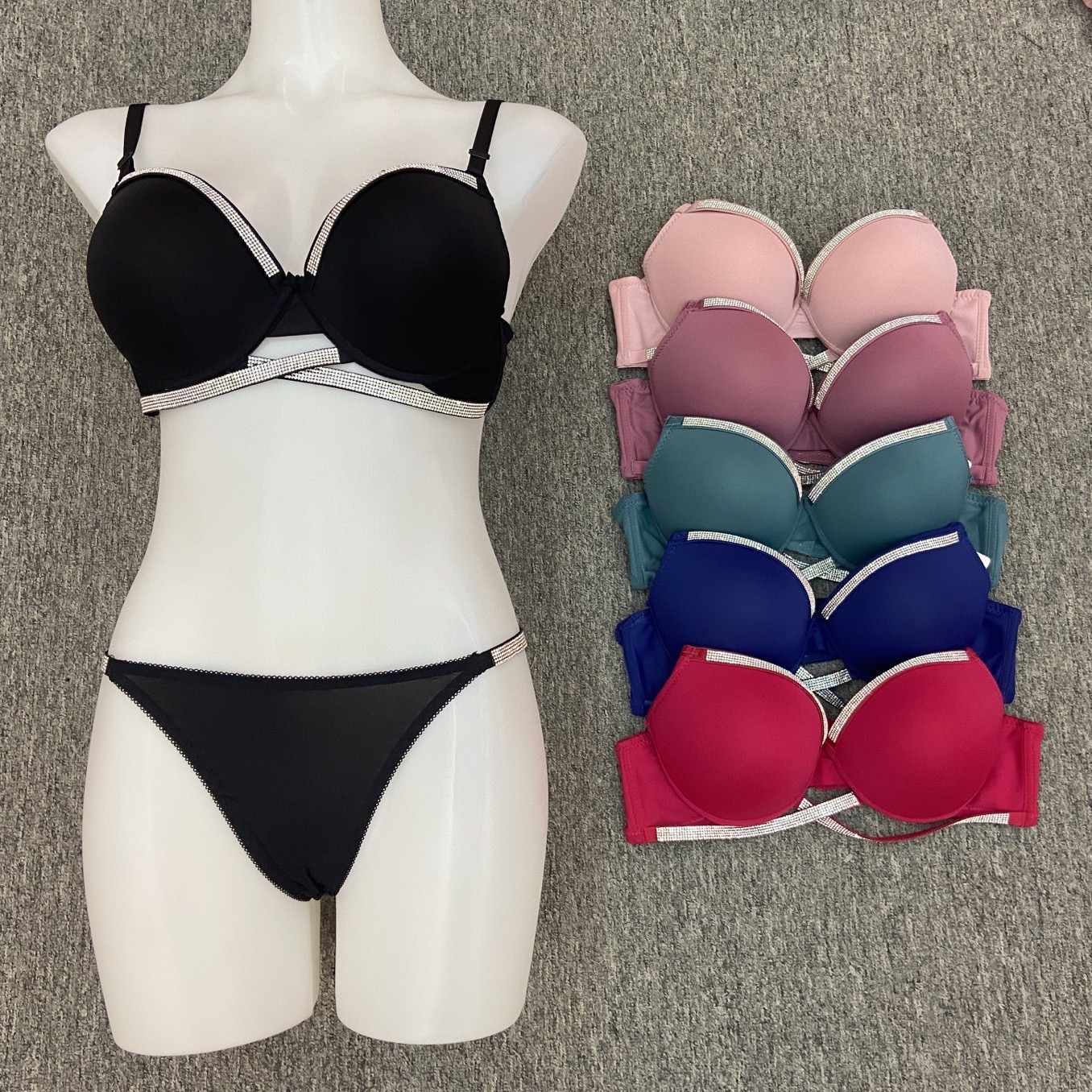 在庫ありの人気商品 女性用下着 ラインストーン付き肩紐 ワイヤー入り バストアップ効果 大きい胸を小さく見せる セクシーなブラジャーとパンツのセット
