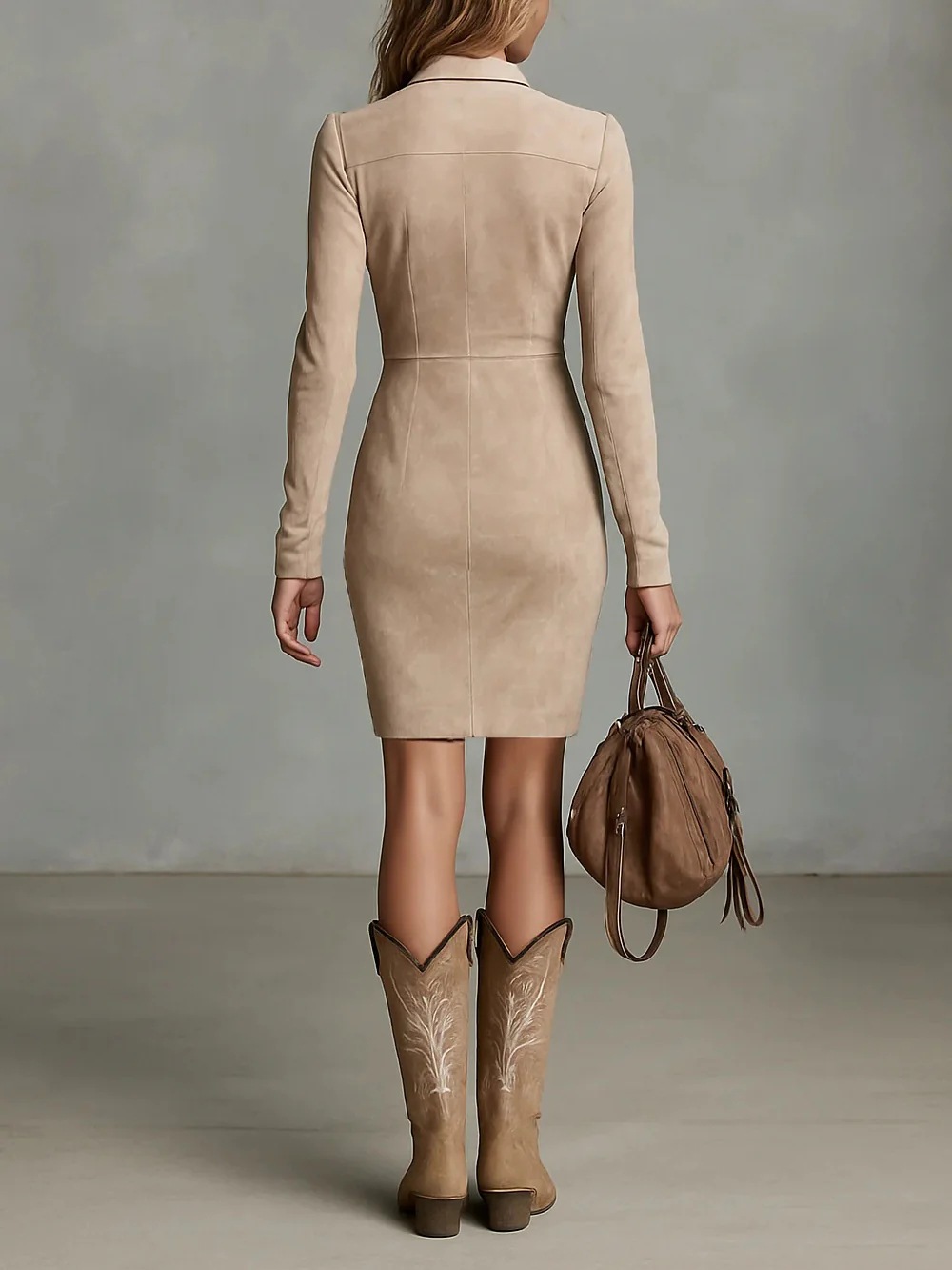 2025欧美跨境 亚马逊秋冬 翻领 单排多扣 鹿皮绒+刺绣 长袖连衣裙