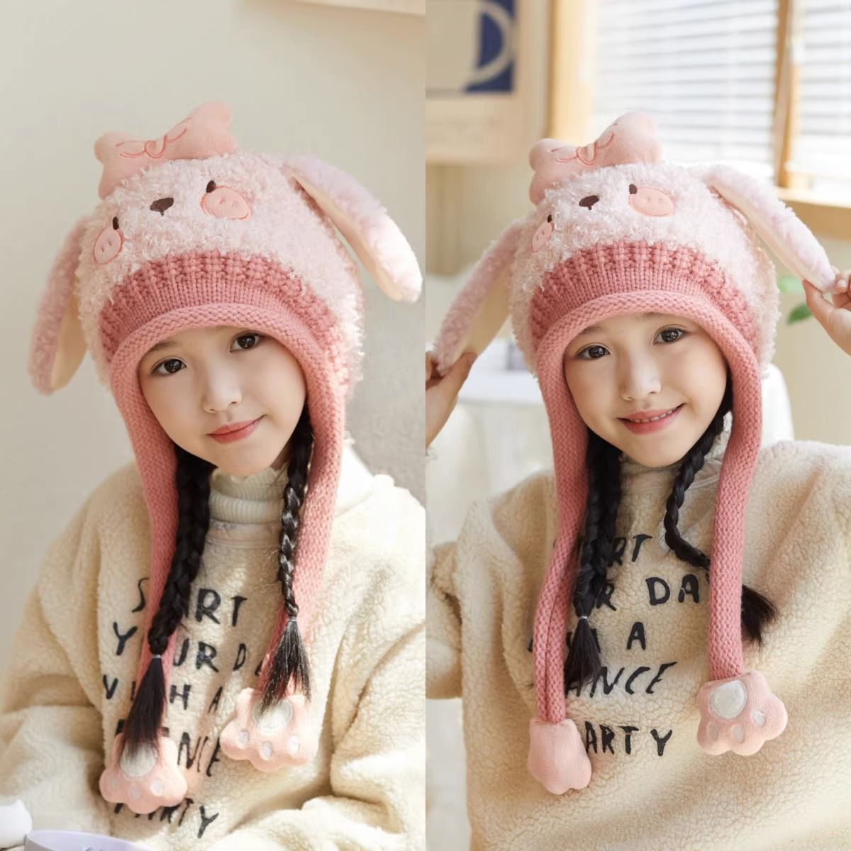 宝宝帽子秋冬季毛绒帽可爱超萌卡通女童护耳帽加厚保暖儿童针织帽