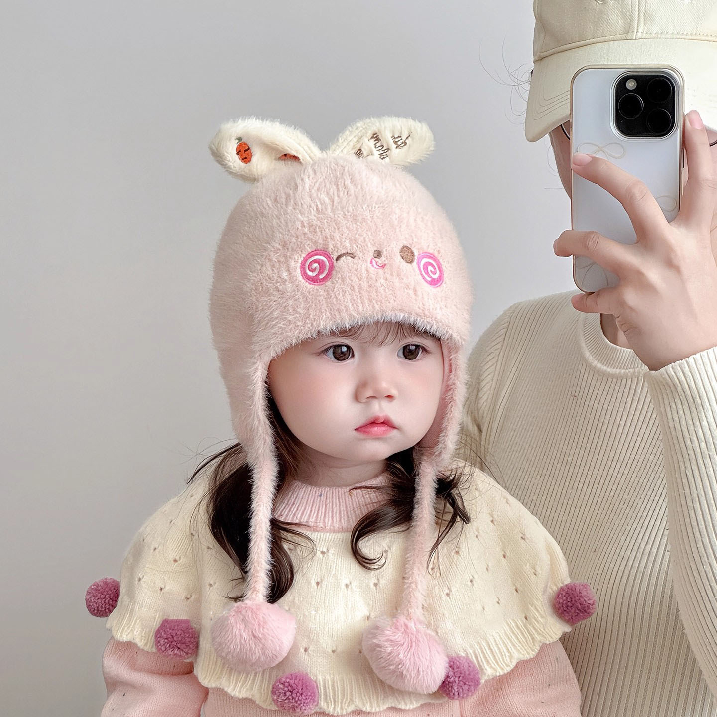 婴幼儿毛绒帽冬季可爱卡通保暖男女童护耳帽韩系户外防风宝宝帽子