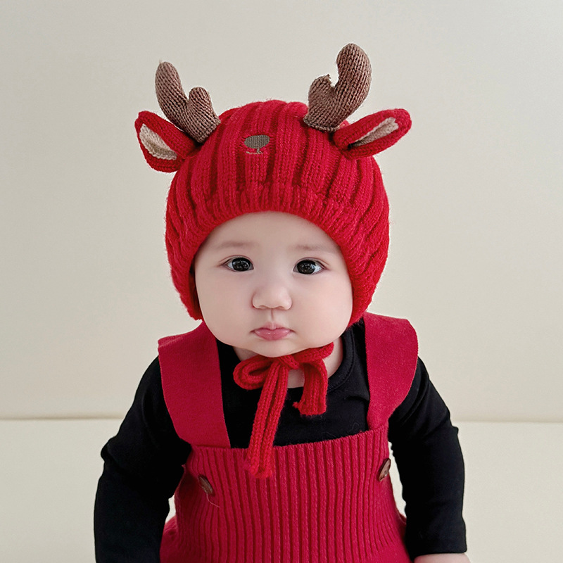赤ちゃんの帽子秋冬の赤いかわいい女の子の新年の帽子の帽子の子供の暖かい毛糸の耳の帽子