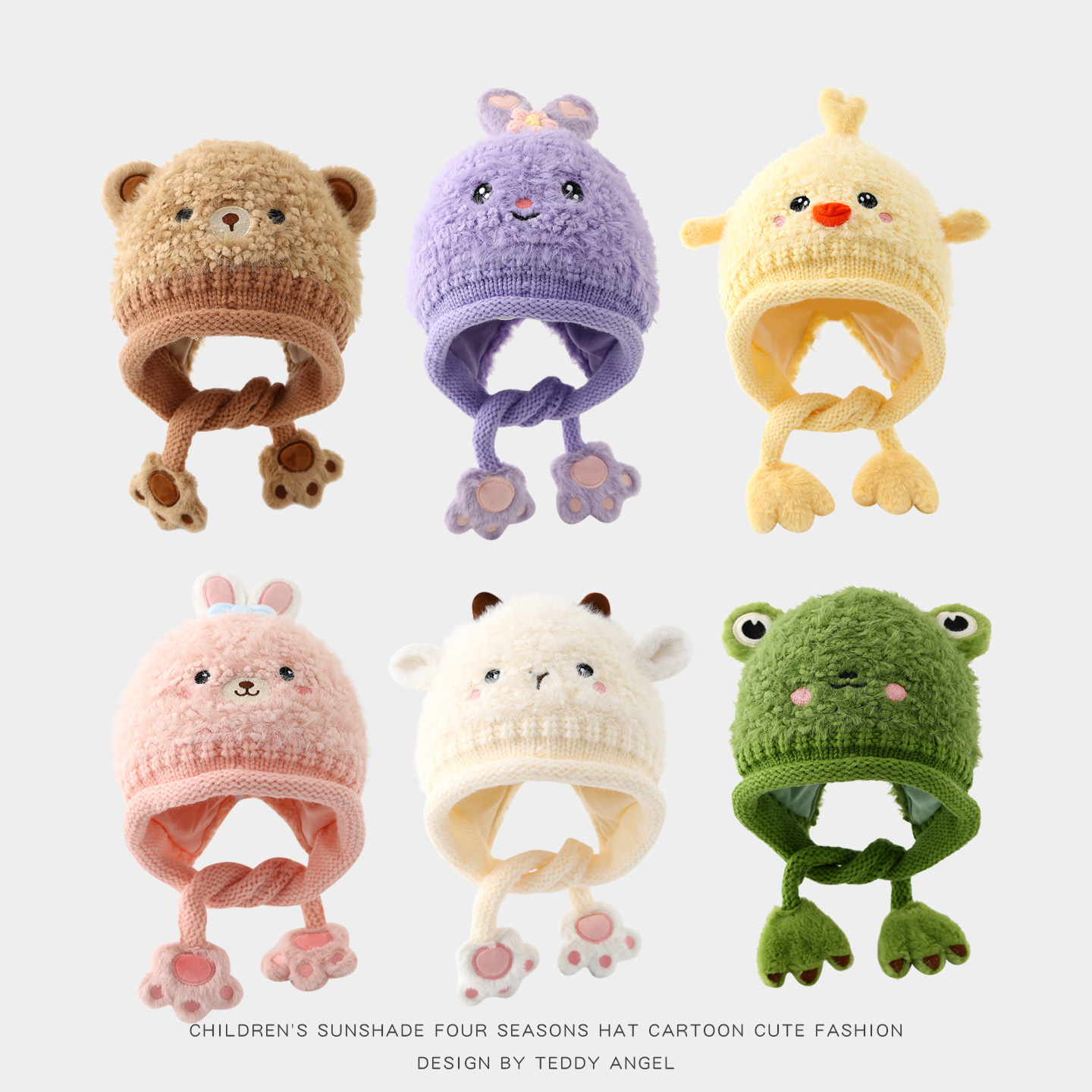 婴儿护耳帽冬季毛绒加厚保暖帽系带防风帽可爱小动物小宝宝针织帽