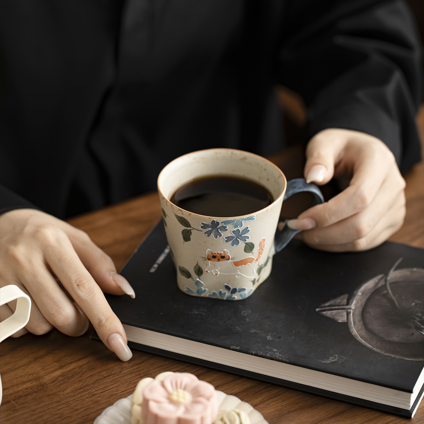 中古风焦糖釉手绘陶瓷咖啡杯子女士个人专用水杯高档精致家用茶杯