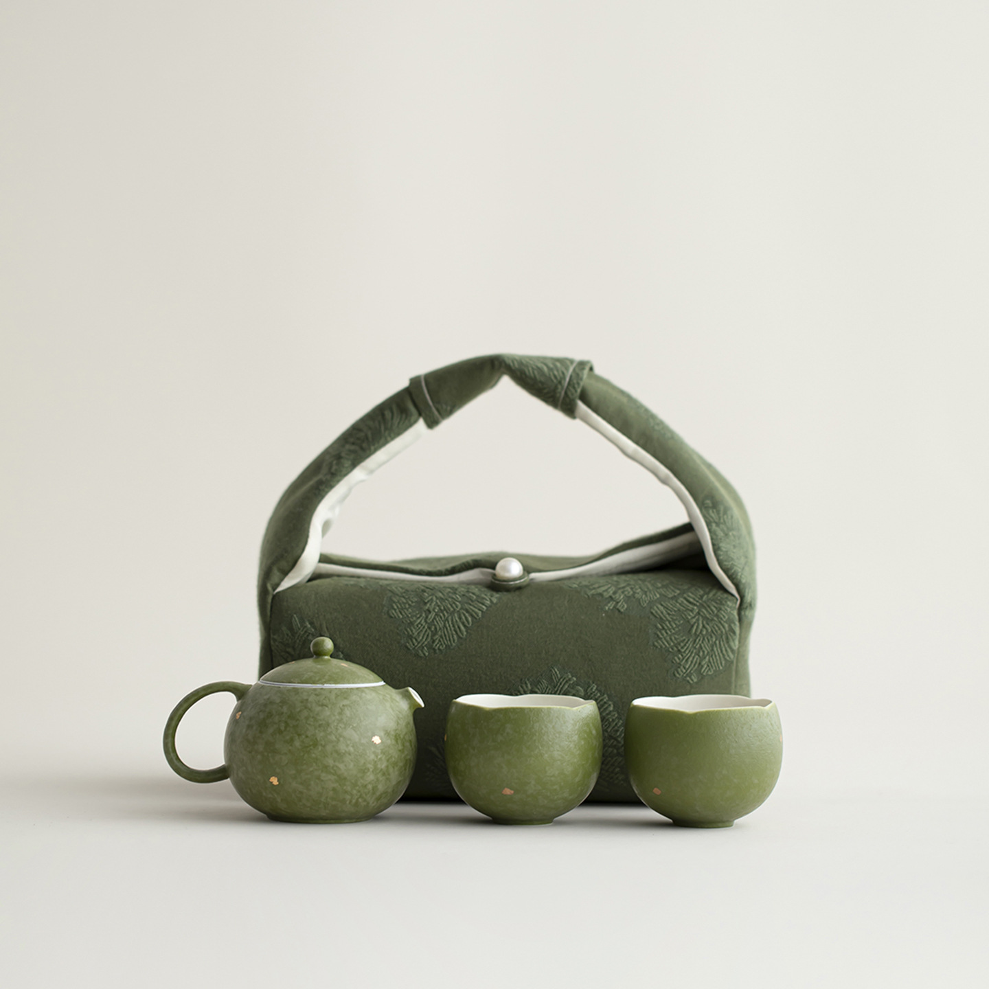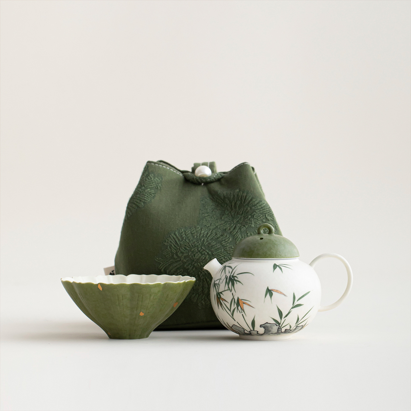 手绘青竹兰花茶壶茶杯布包装壶杯组合家用便携装旅行套装送亲友