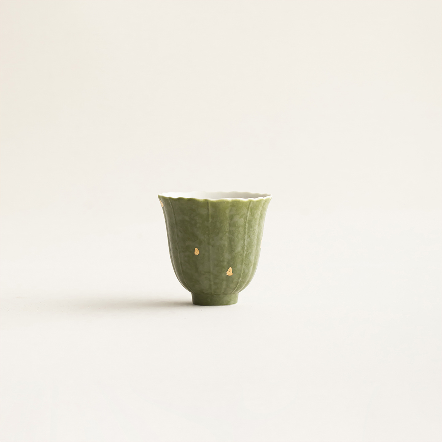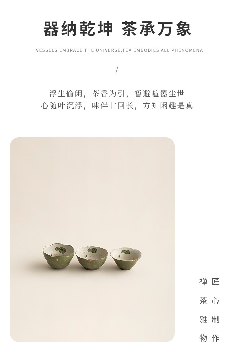 新中式陶瓷小青柑橘绿洒金花口茶杯主人杯女传统中国色手绘葵花杯