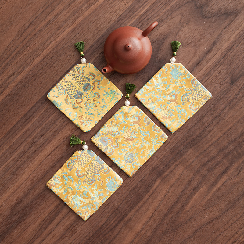 2025 新しい四角い金と銀の錦織魚コースター毎年生産布アートホームティーコースターティーセット断熱パッド