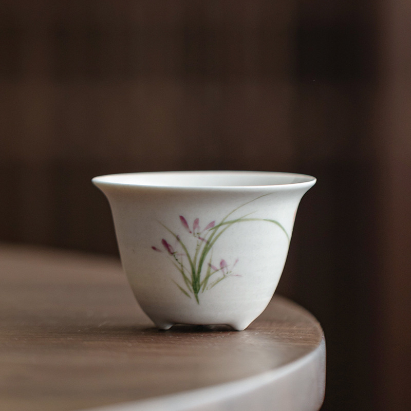 草木灰手描き蘭カップシングルカップ家庭用主人カップ陶磁器温香カップ工夫茶器シングル品茗杯