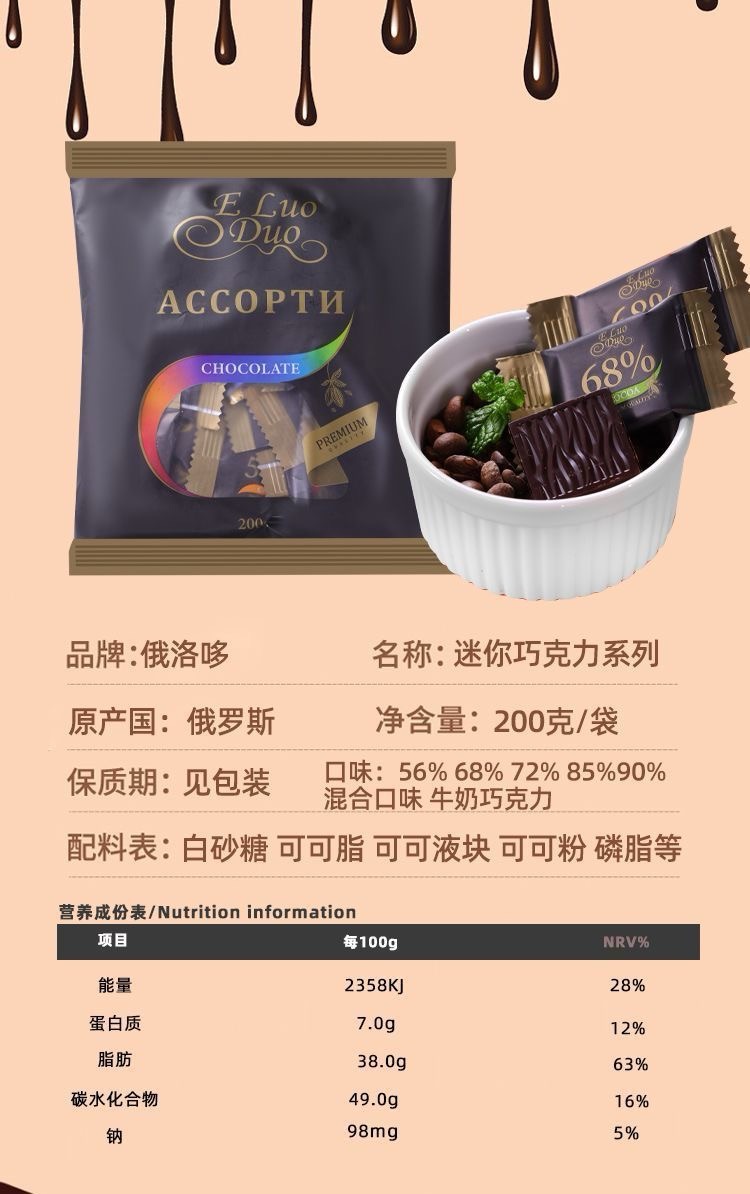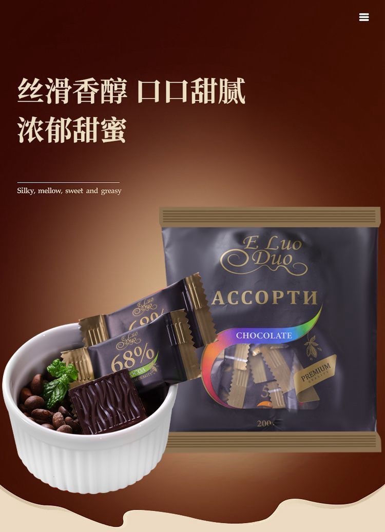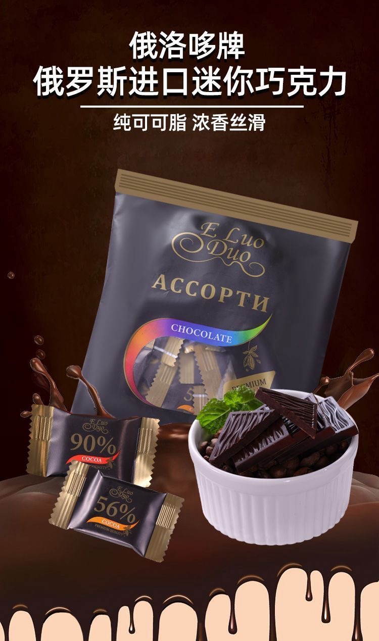 新年零食俄罗斯俄洛哆迷你黑巧克力混合多规格200g独立小包装追剧