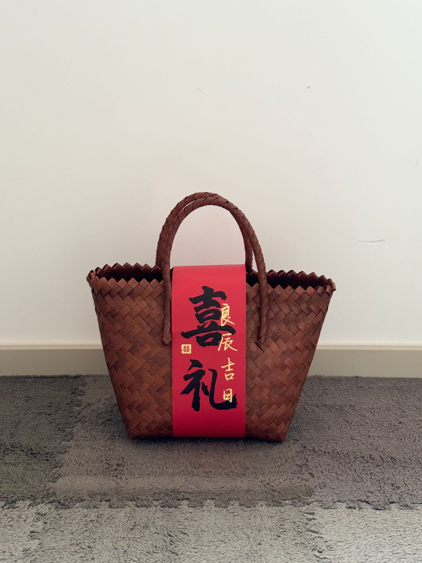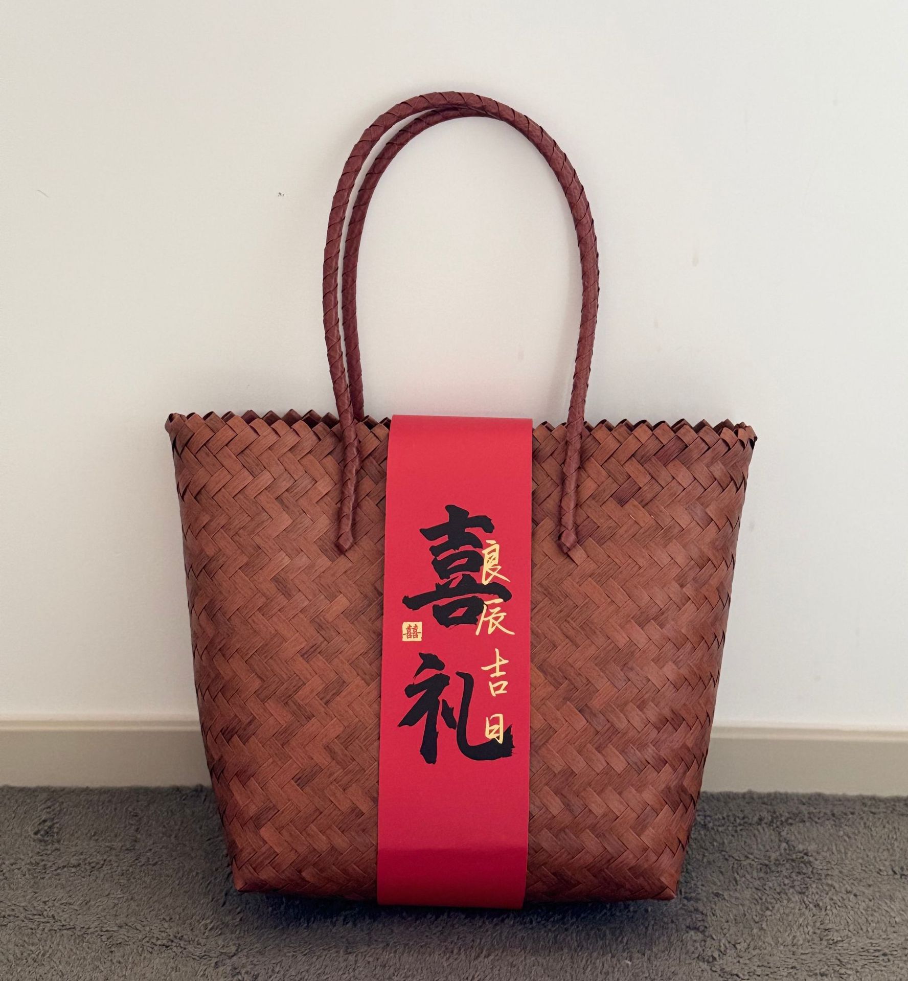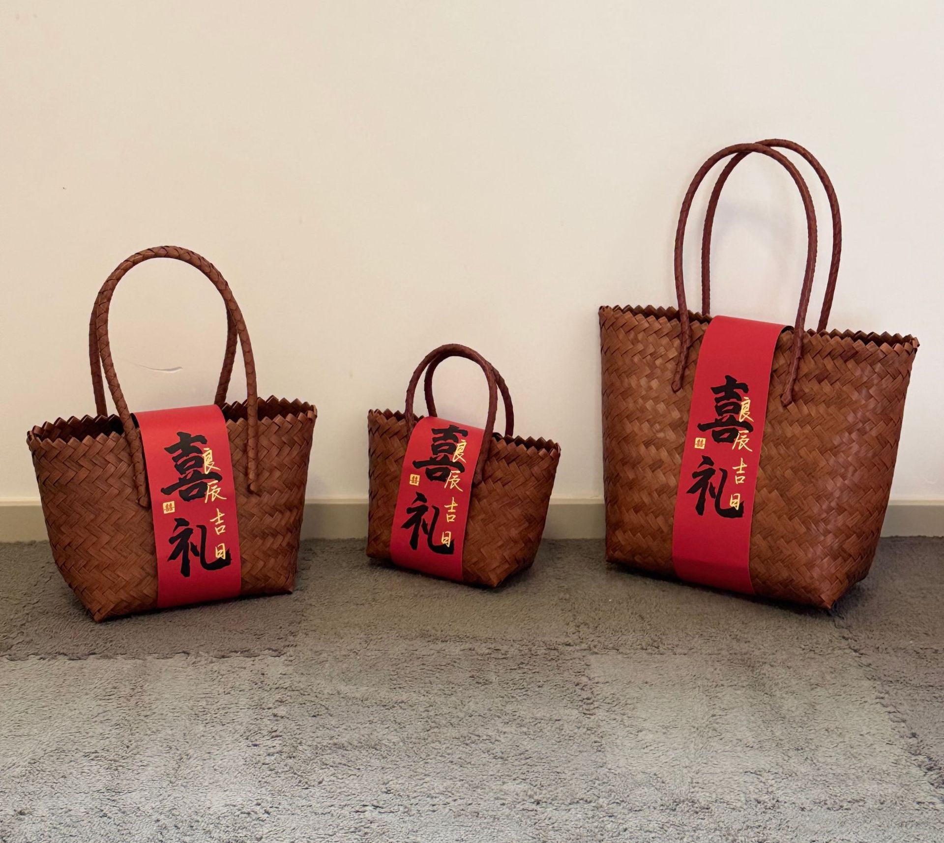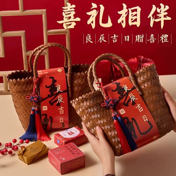 新中式乔迁手工编织篮子年会周岁寿伴手礼结婚喜铺礼品藤编手提包