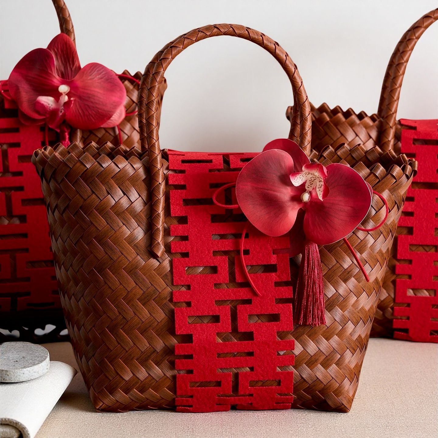新しい中国風模造籐編みバスケットポータブルバスケットブライズメイド記念品結婚式ギフト包装満月誕生日新築祝い