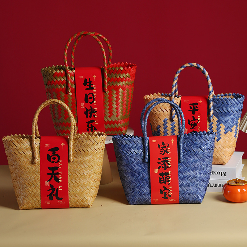 手提礼篮百日伴手礼袋乔迁过寿喜事礼物盒编织宴喜糖百日宴腊肠狗