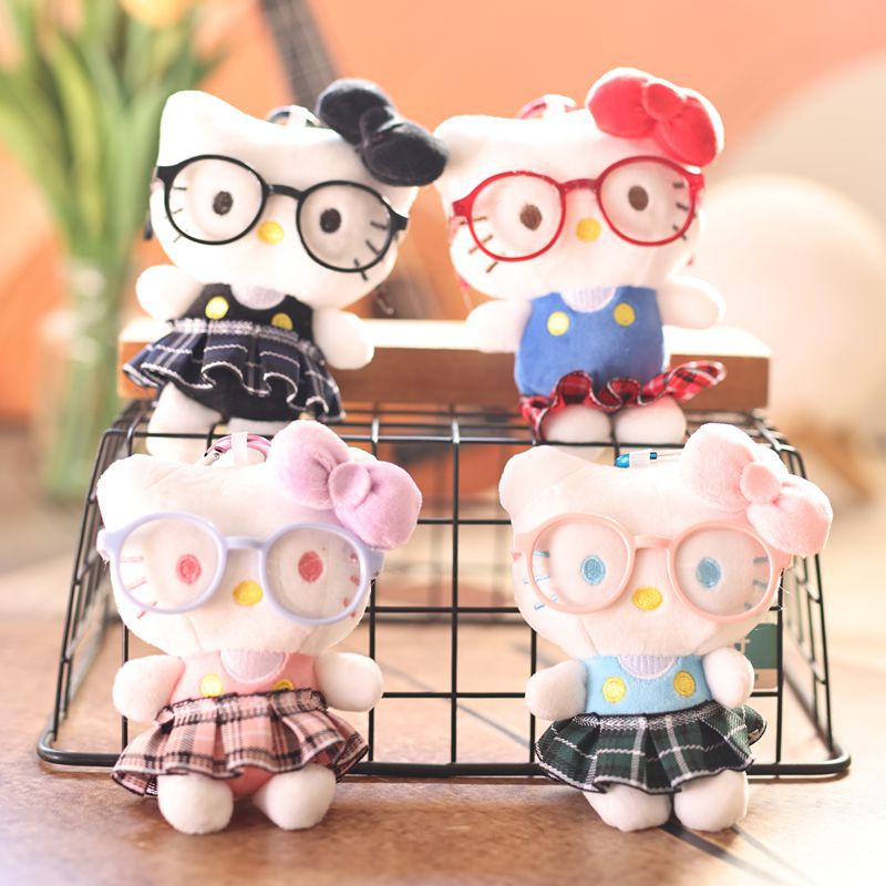 可爱萌眼镜kt猫挂件毛绒玩具公仔小猫咪包包挂饰钥匙扣布娃娃玩偶