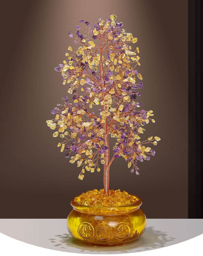 天然水晶の金持ちの木の置物黄水晶の招き木の宝盆の金の木の家の開業の贈り物の置物