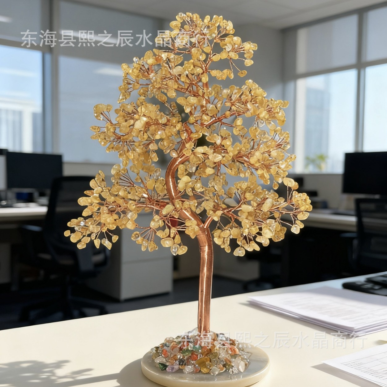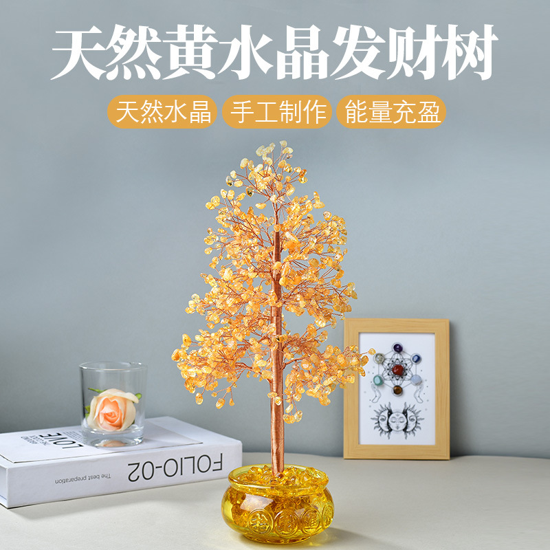 跨境爆款黄水晶碎石水晶树发财树手工艺品家居办公室摆件饰品礼品
