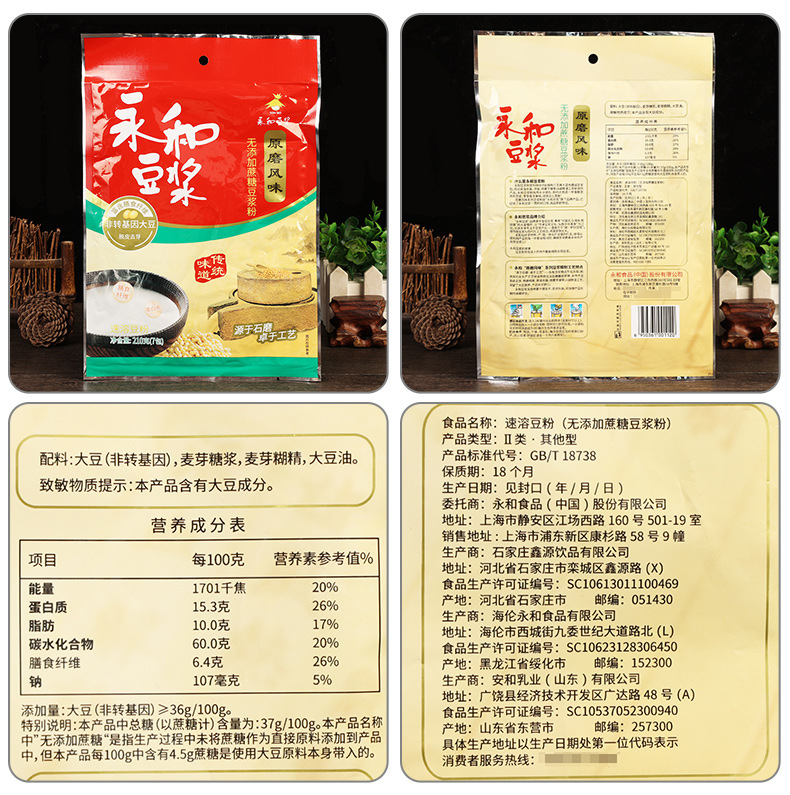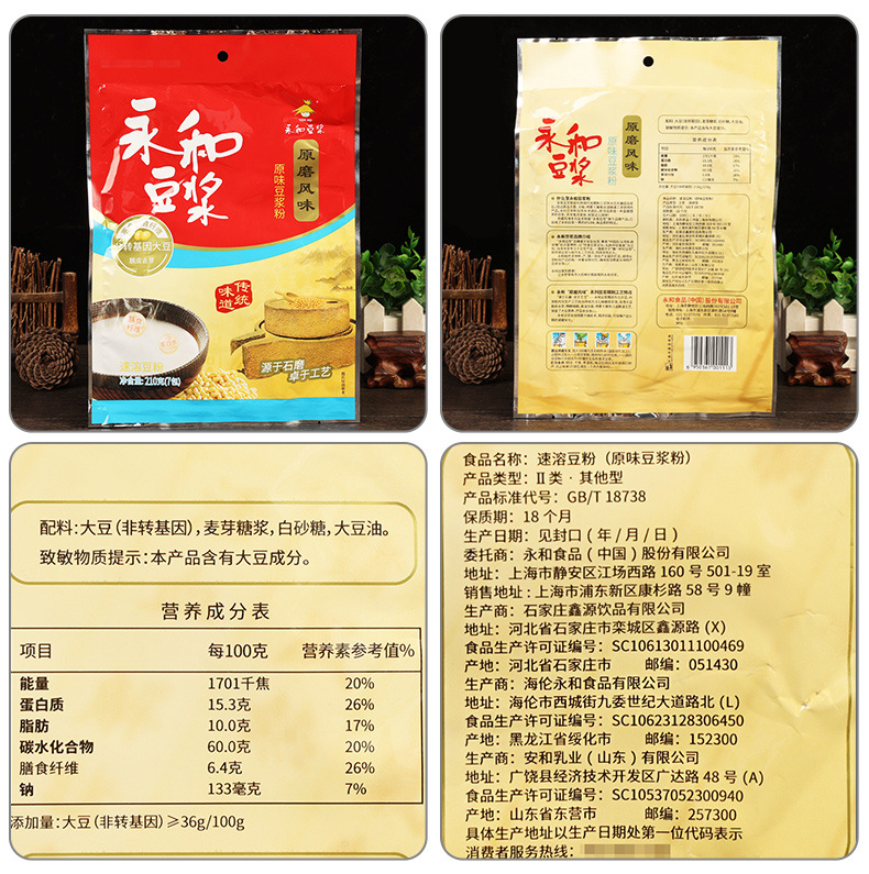 包装规格 永和原磨豆浆粉210g【无添加蔗糖】,永和原磨豆浆粉210g【原味】