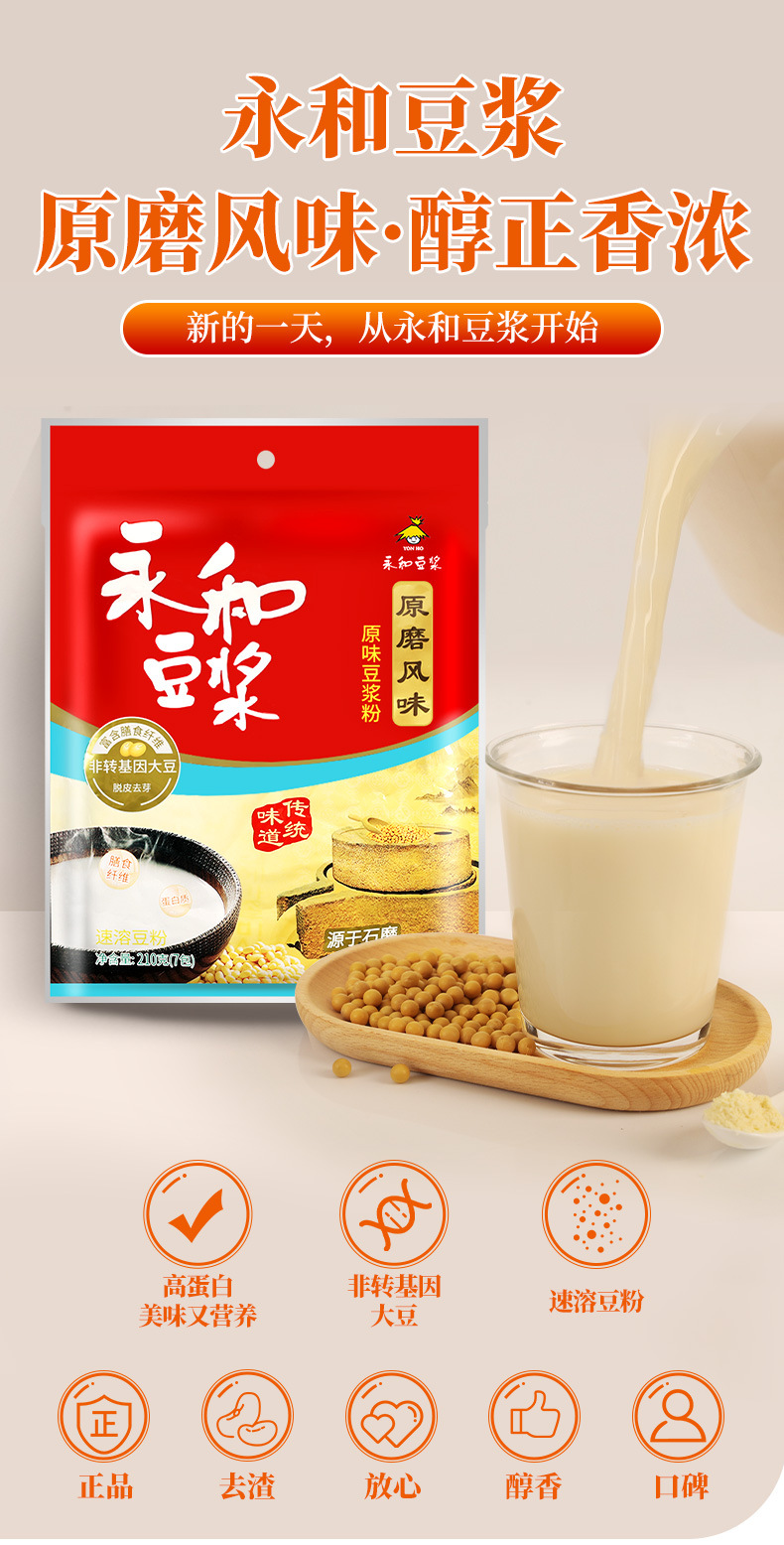 包邮永和豆浆210g豆粉速溶原磨豆奶粉无蔗糖豆浆早餐饮品甜豆浆粉